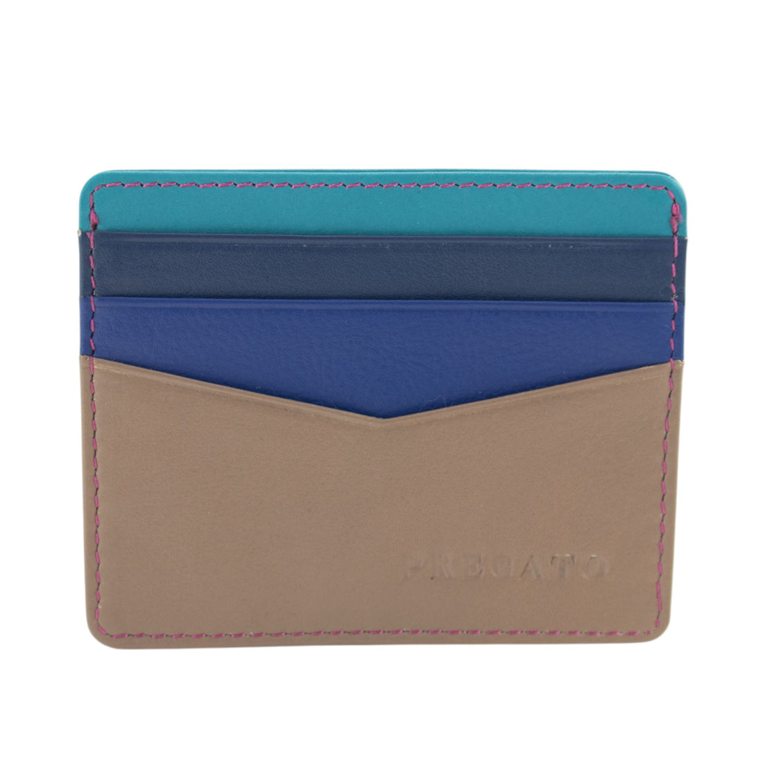 Tarjetero de Piel Napa Premium Pregato Hilo Fucsia