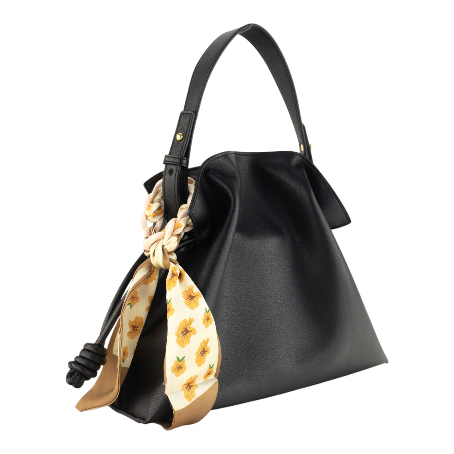 Su tamaño medio es ideal para el día a día, permitiéndote llevar lo esencial de forma organizada y cómoda. Tiene asa de mano regulable y cinta adicional que te permitirá llevarlo en opción de bandolera, el cierre es mediante frunce que puedes adaptar y cambiará su forma ligeramente y cierre imantado. Charm de la imagen incluido