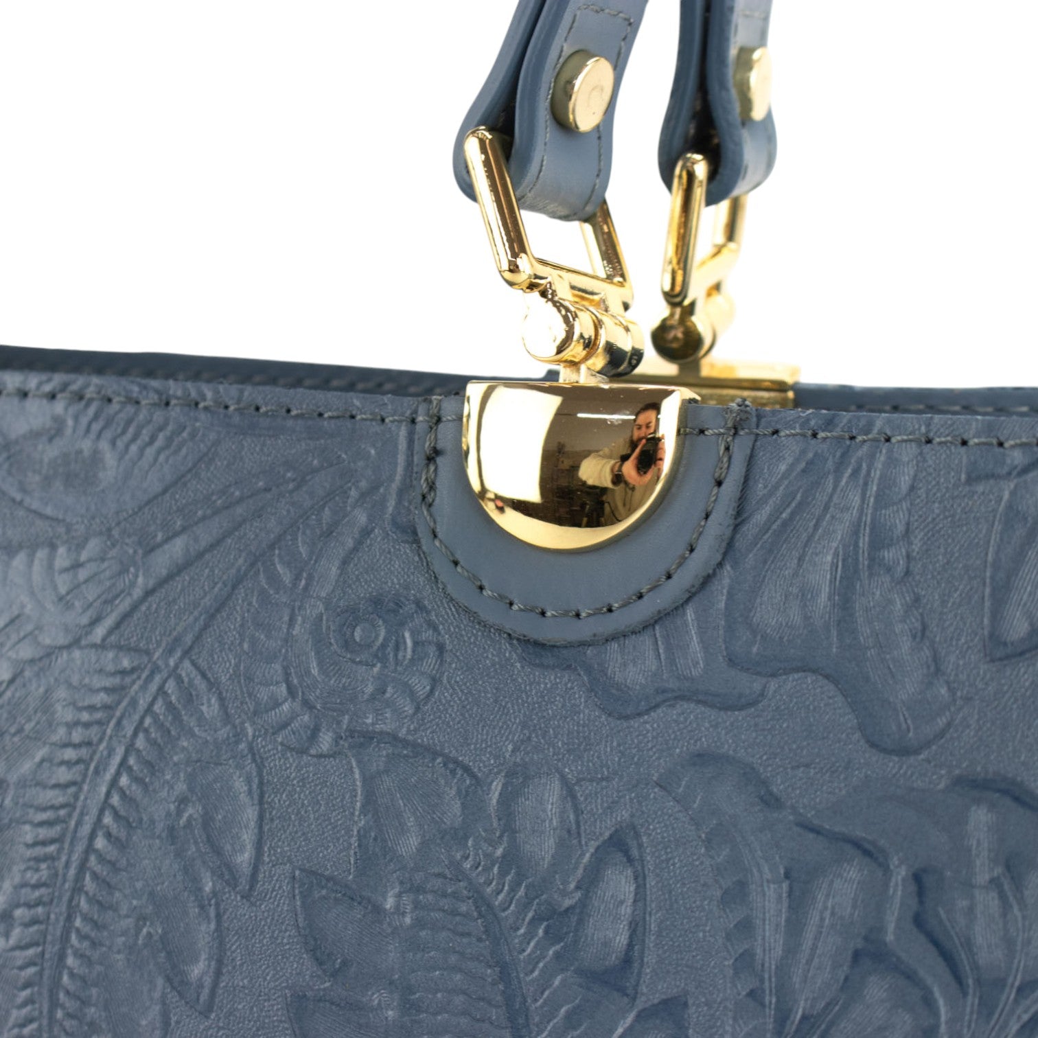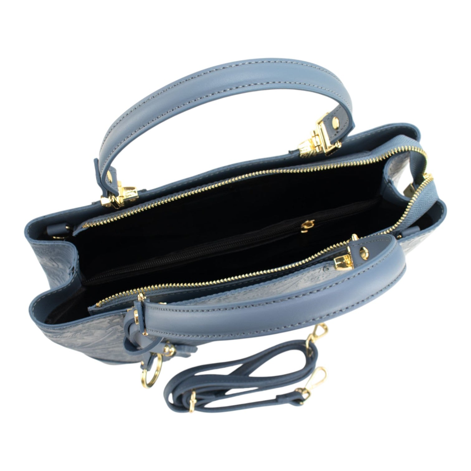 Bolso en piel Pregato Eleganza Grabado Azul Jeans
