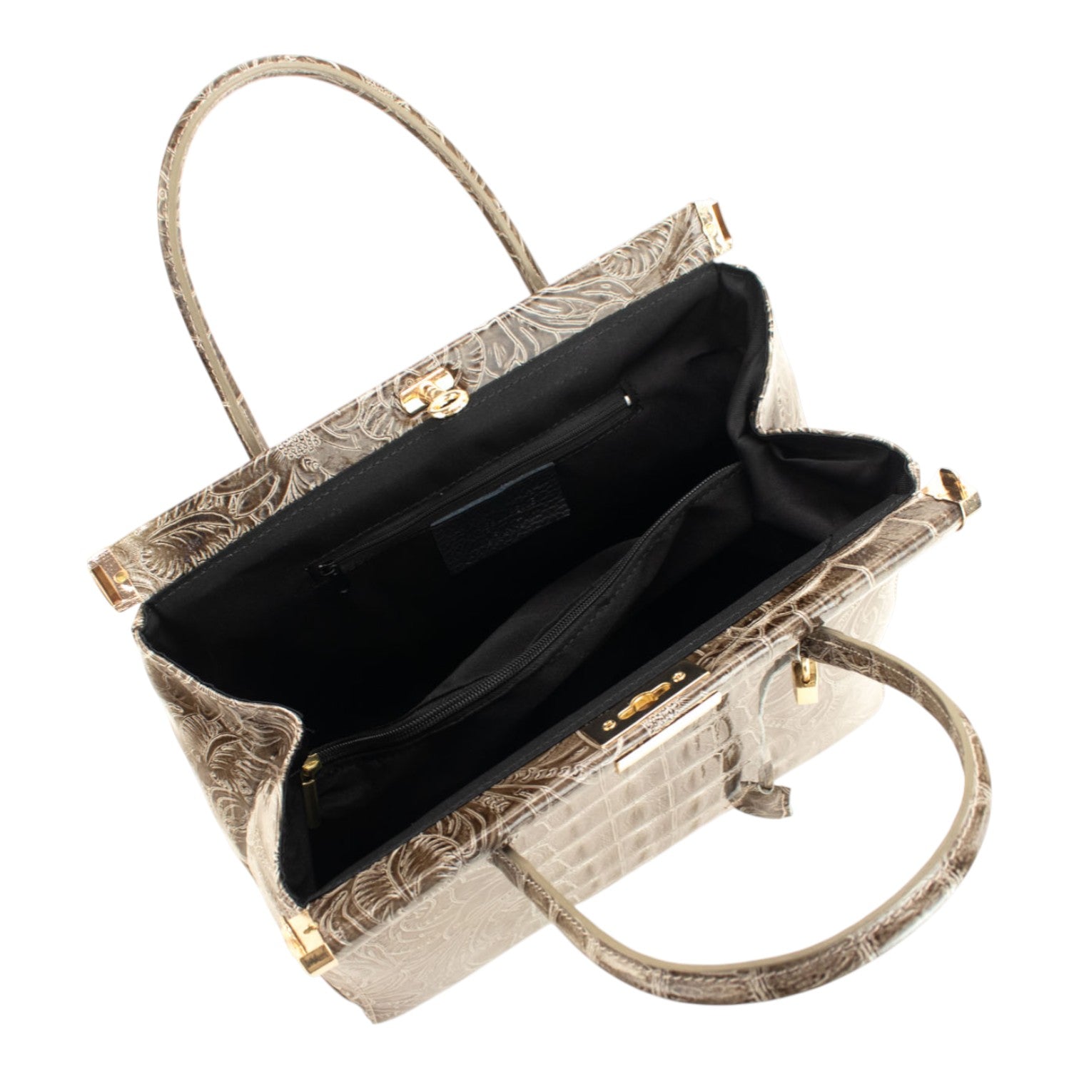 Bolso de mano en Piel Pregato Classic Special Croc Floral Taupe