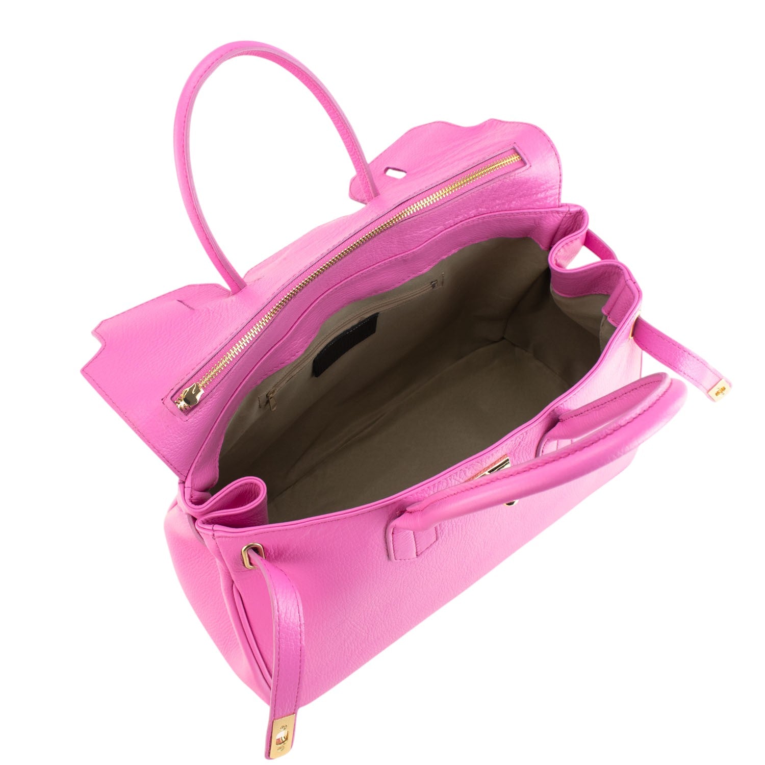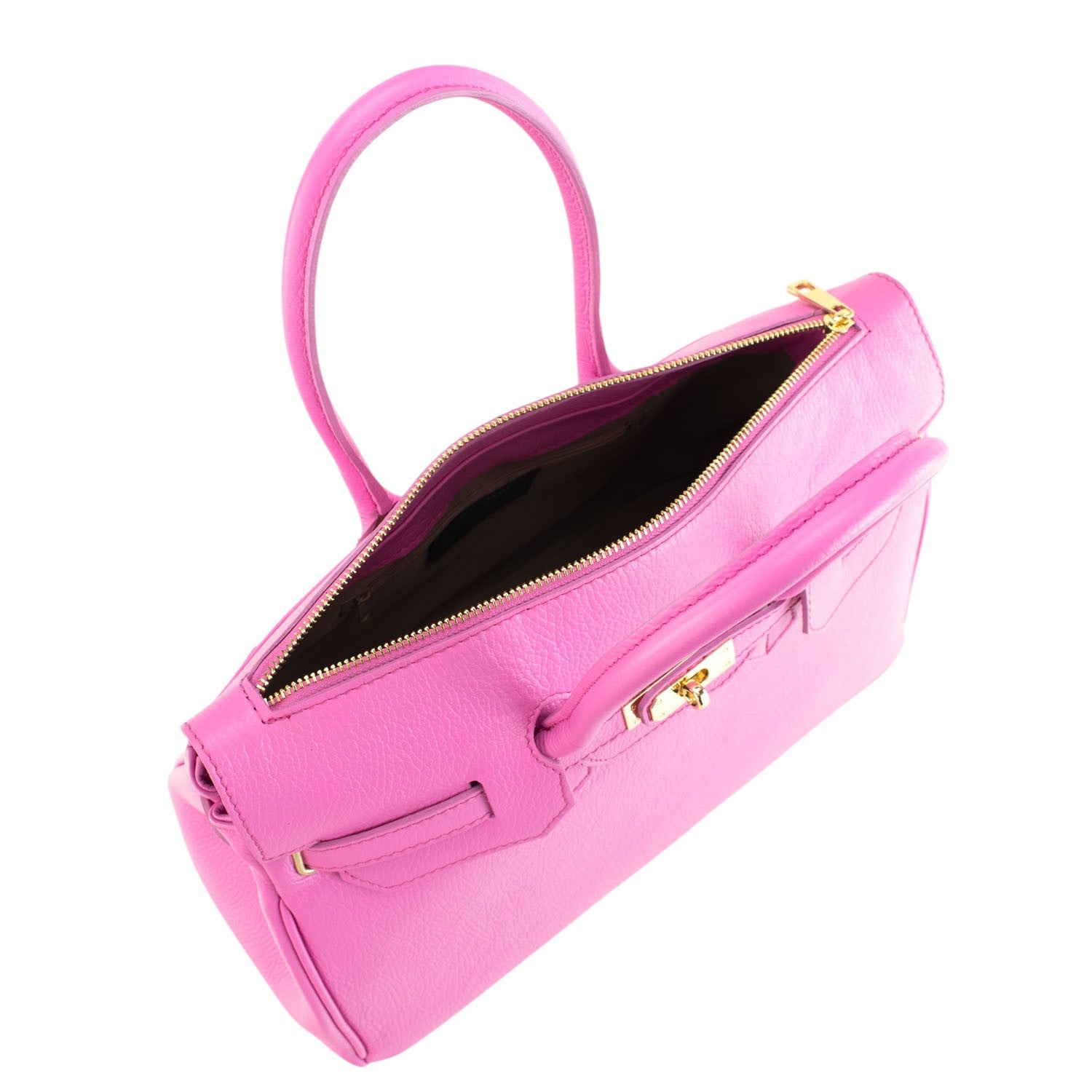 Un bolso muy original para lucir a diario, realizado en Piel 100% genuina vacuno italiana, este bolso está hecho en Italia con una excelente manufactura y calidad, tiene un compartimento interior amplio y cierre de broche además de un cierre superior con cremallera para facilitar el acceso al compartimento principal. Dispone de cómodas asas para llevar de mano.
