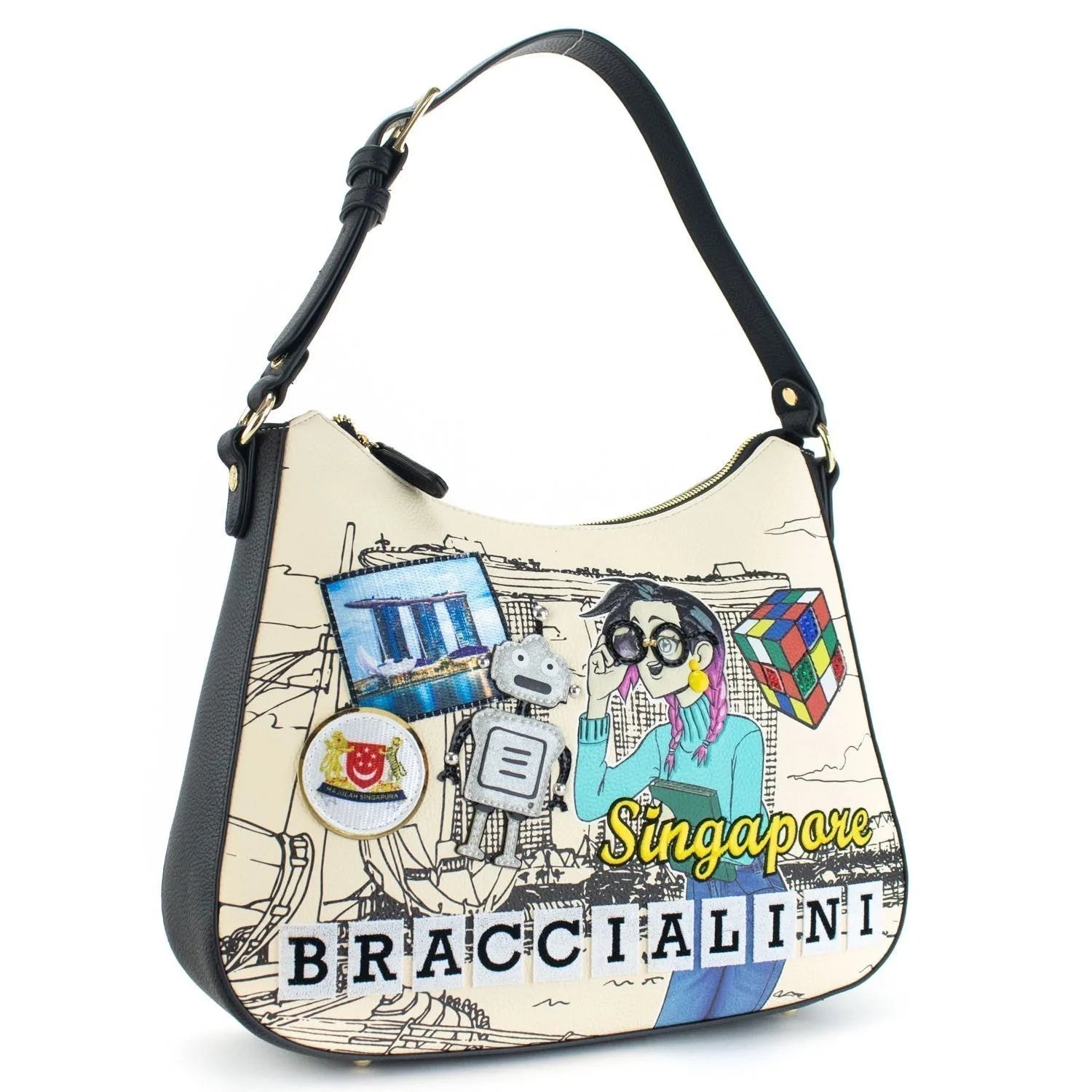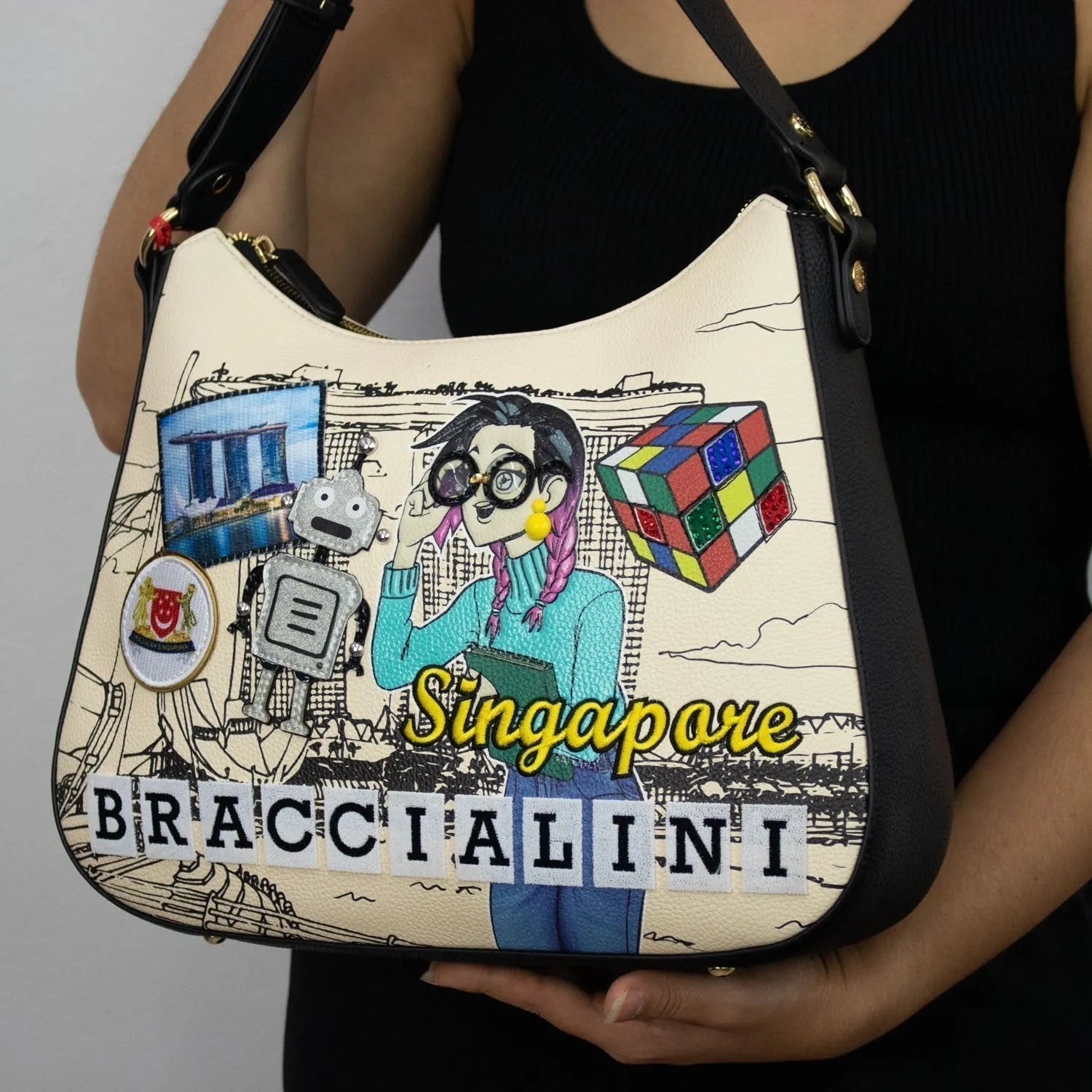 The journey begins with this beautiful Braccialini Singapore gondola bag