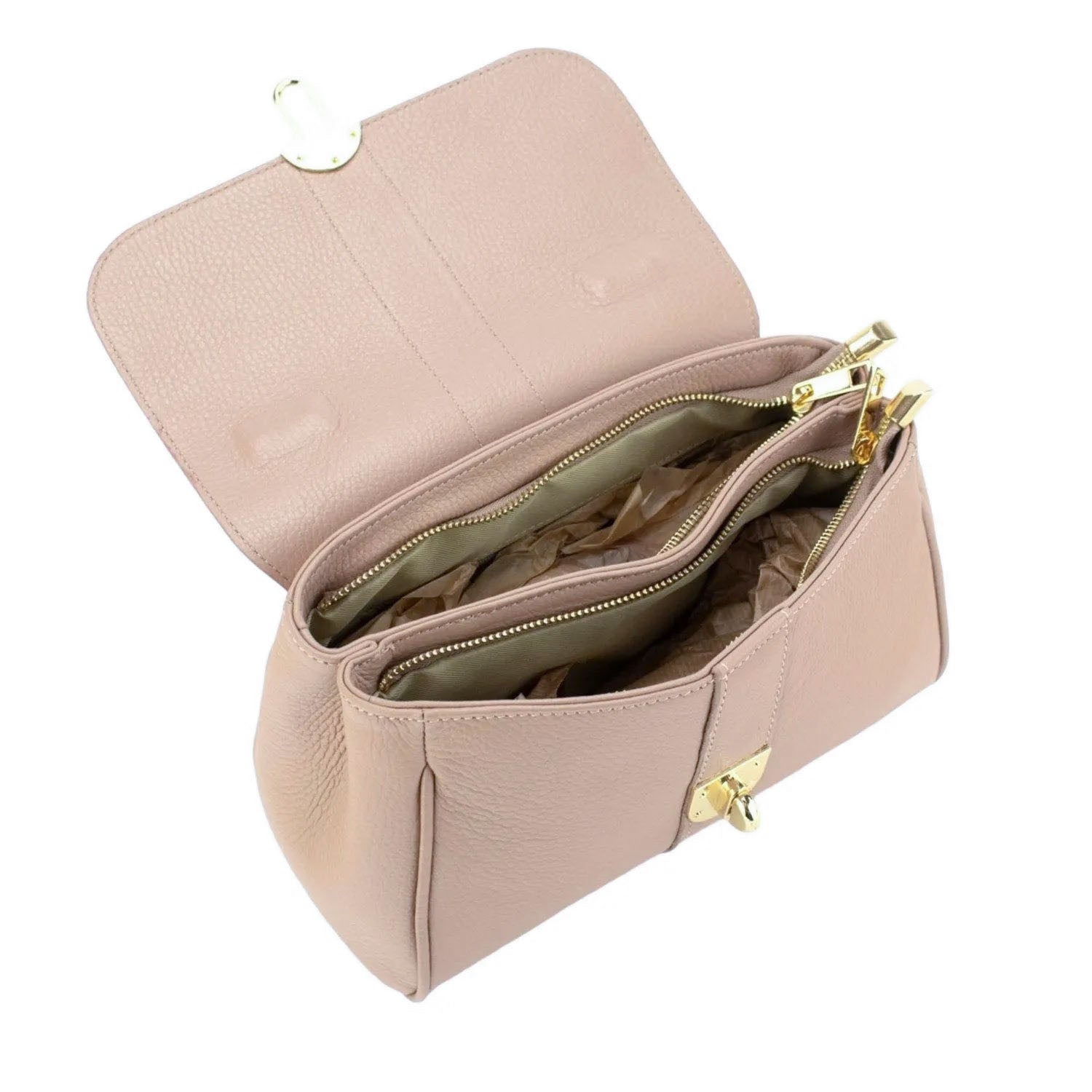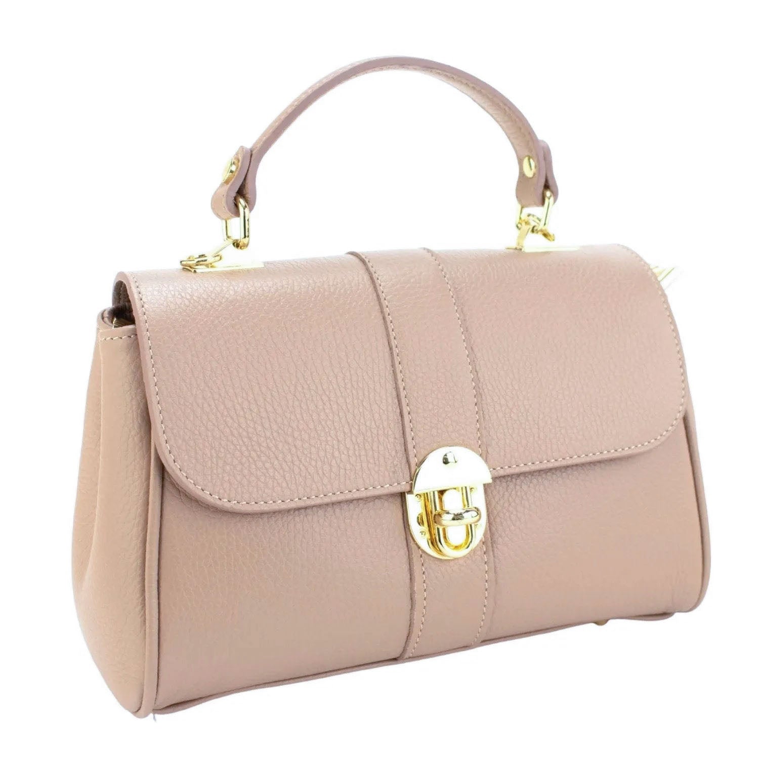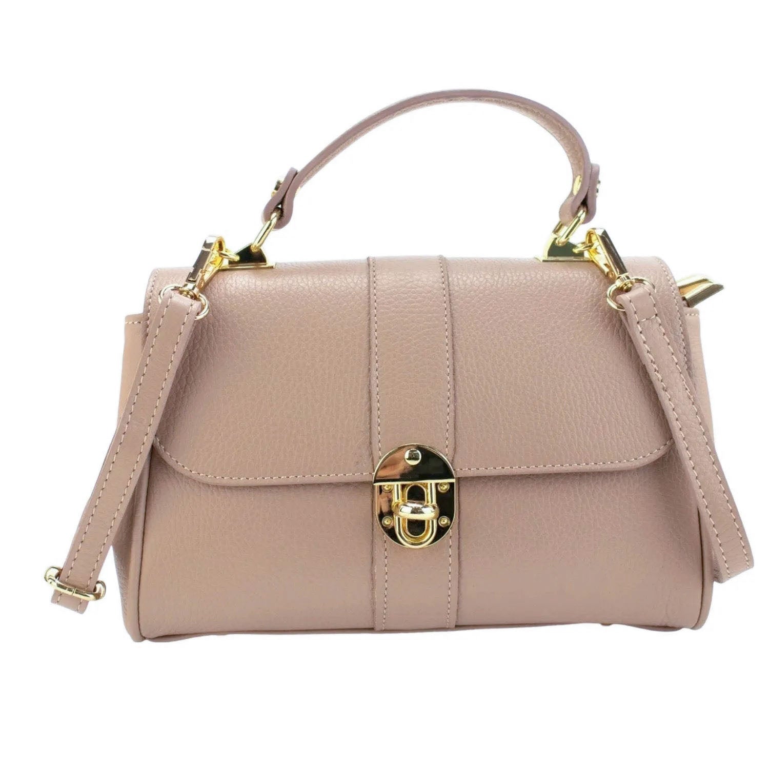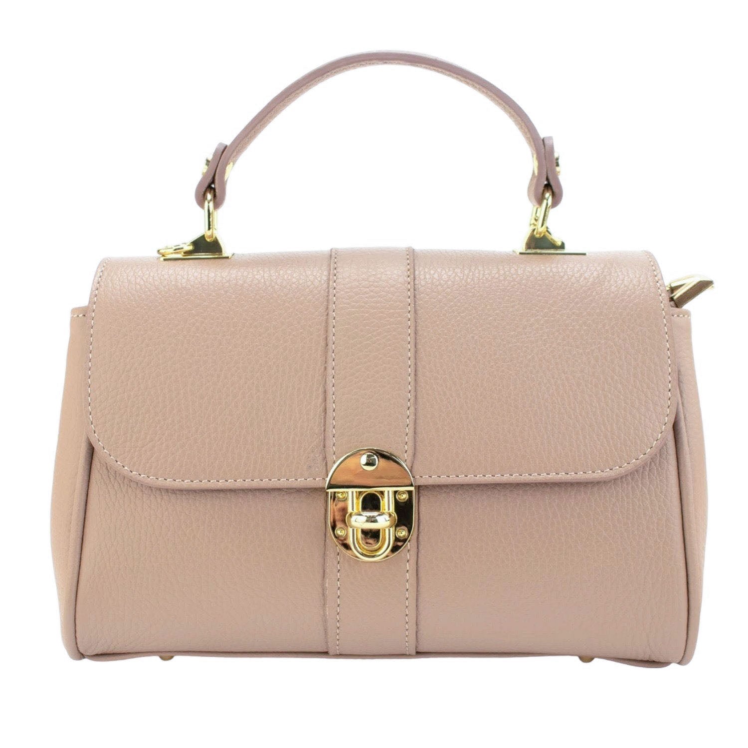 A very original bag to wear every day, made of 100% genuine Italian cowhide leather, this bag is made in Italy with excellent manufacturing and quality, it has a very original gold-tone metallic clasp flap closure, with a large double interior compartment with Zip closure. It has a hand handle and adjustable shoulder strap.