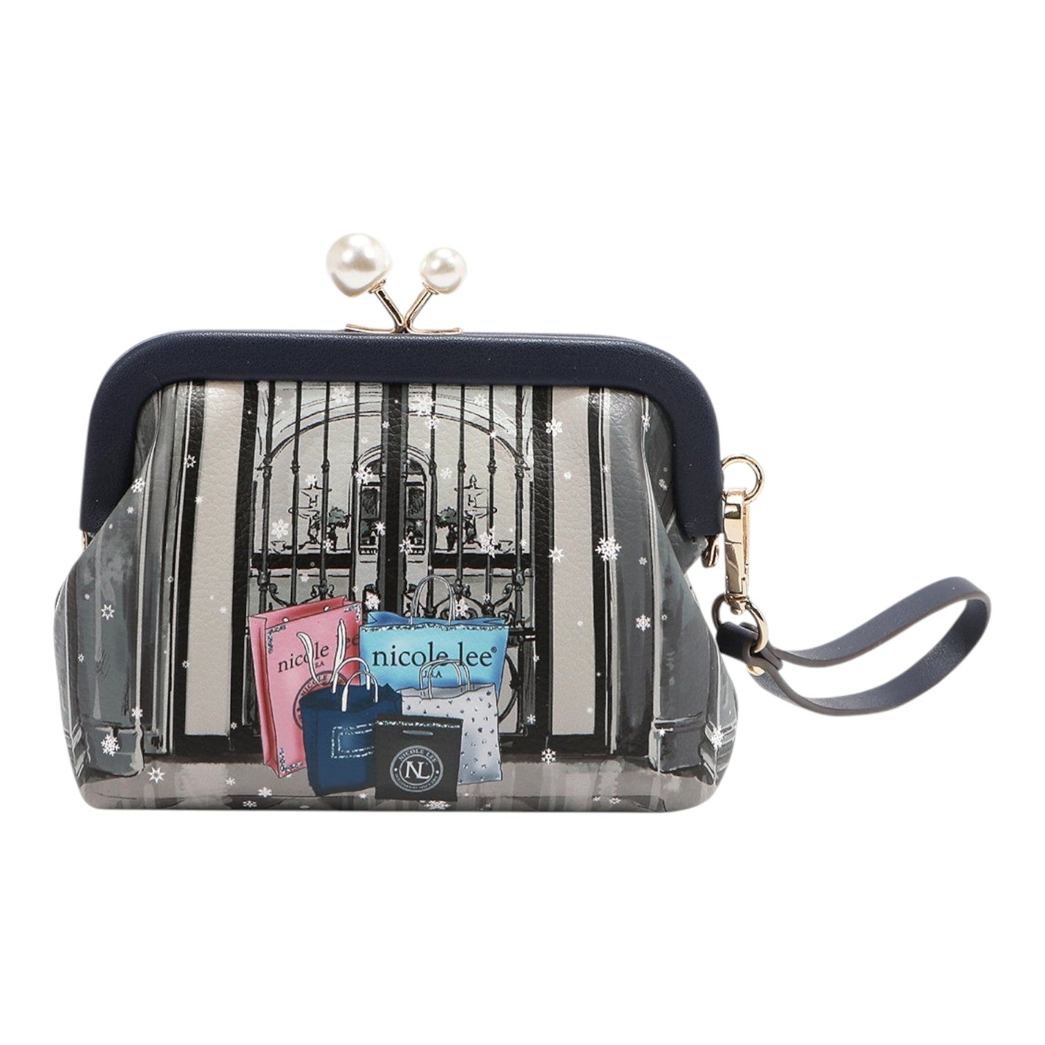 Complementa tu bolso con este Monedero boquilla Nicole Lee Moda SnowFlake, te encantará, con un cierre diferente de boquilla con perlas, es perfecto para usar como monedero de mano con el asa que incluye o para añadir en tu bolso. Sistema de protección antirrobo RFID.