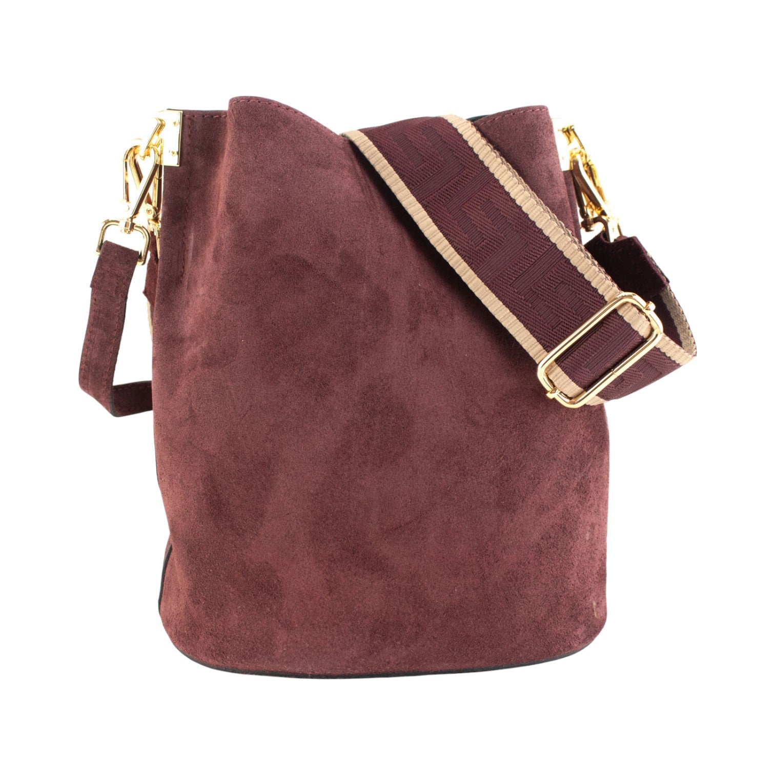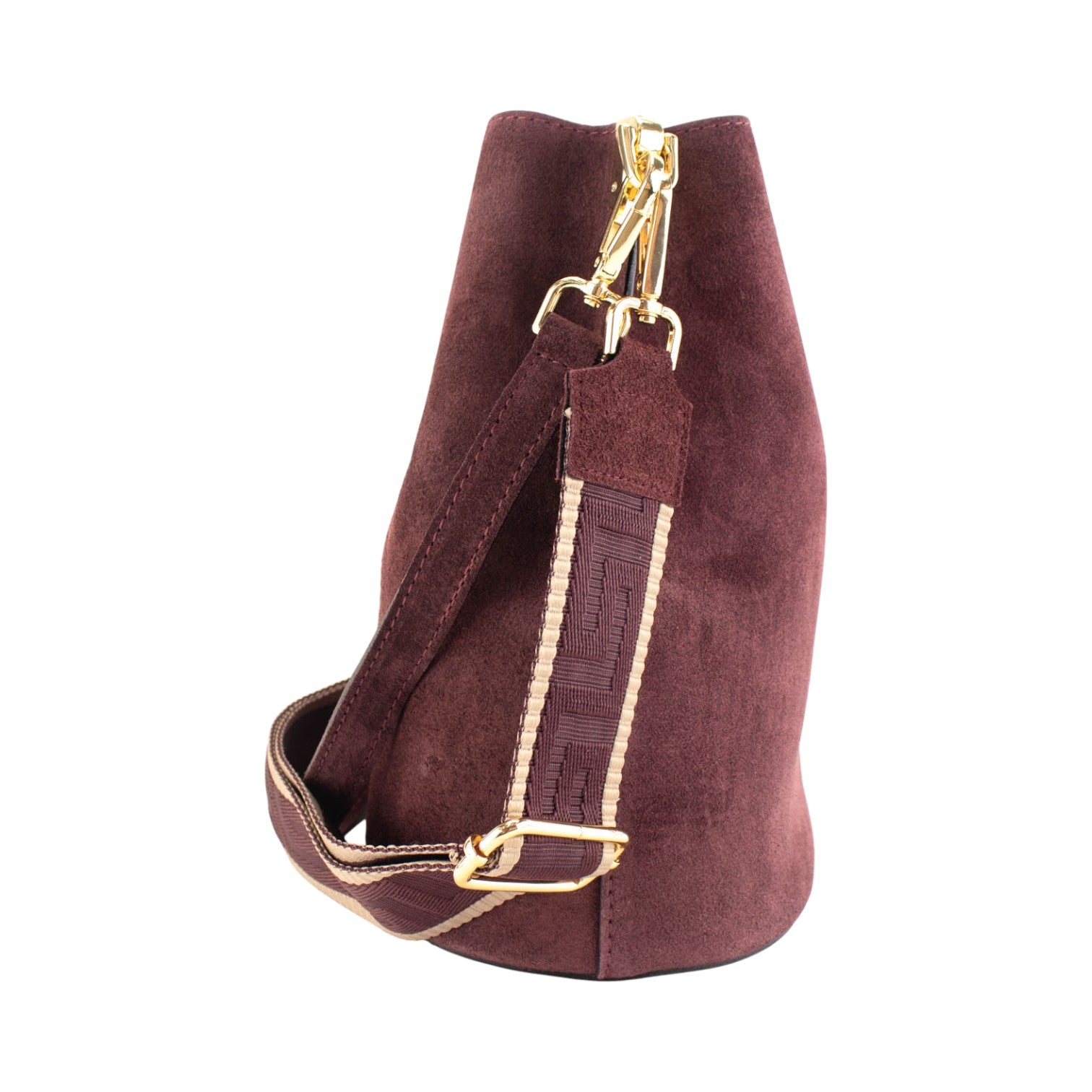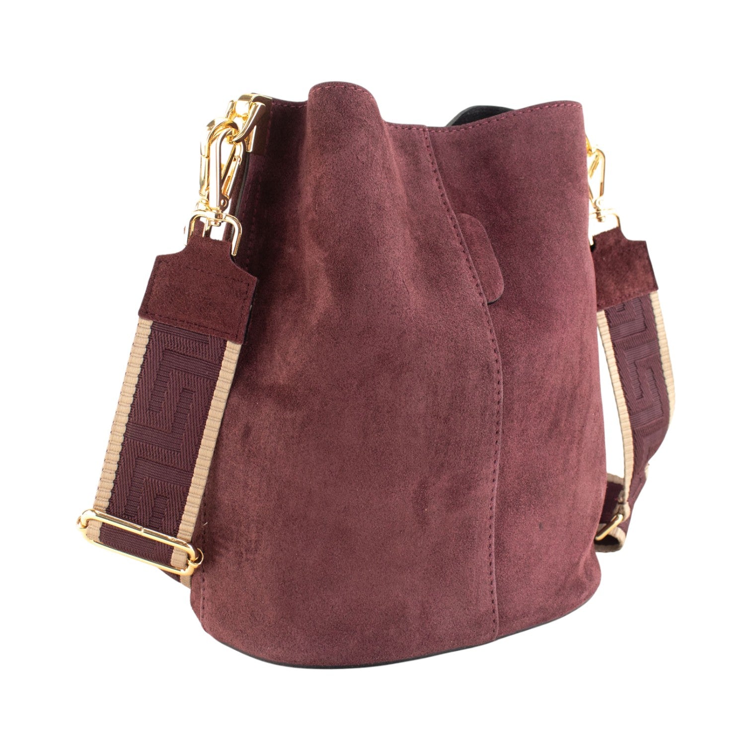 Bandolera Piel Pregato Secchio Peach Burdeos cinta Greca