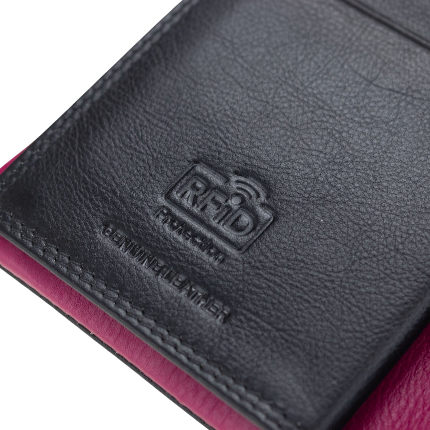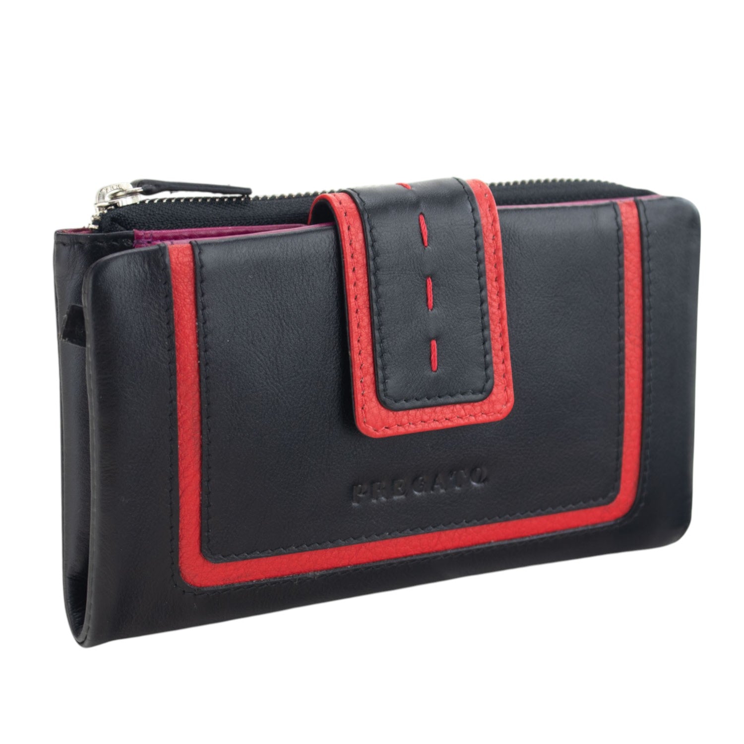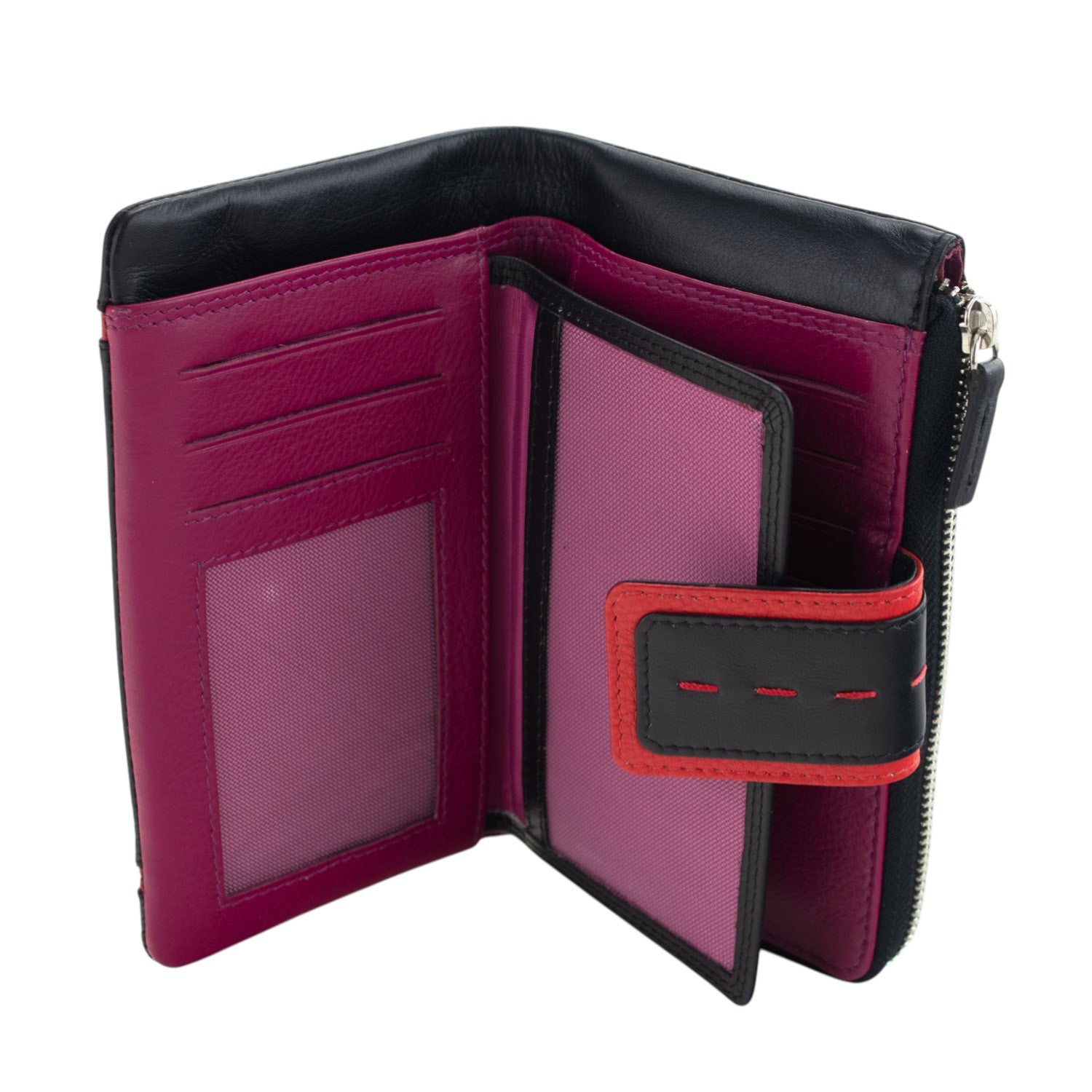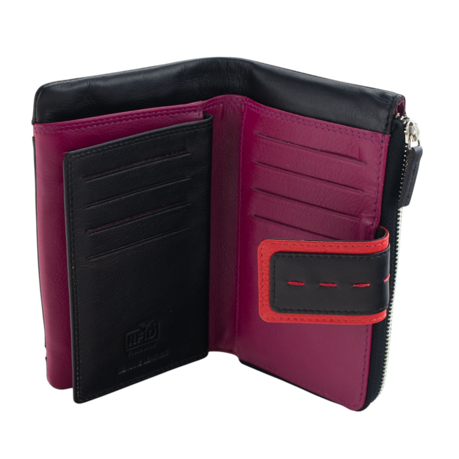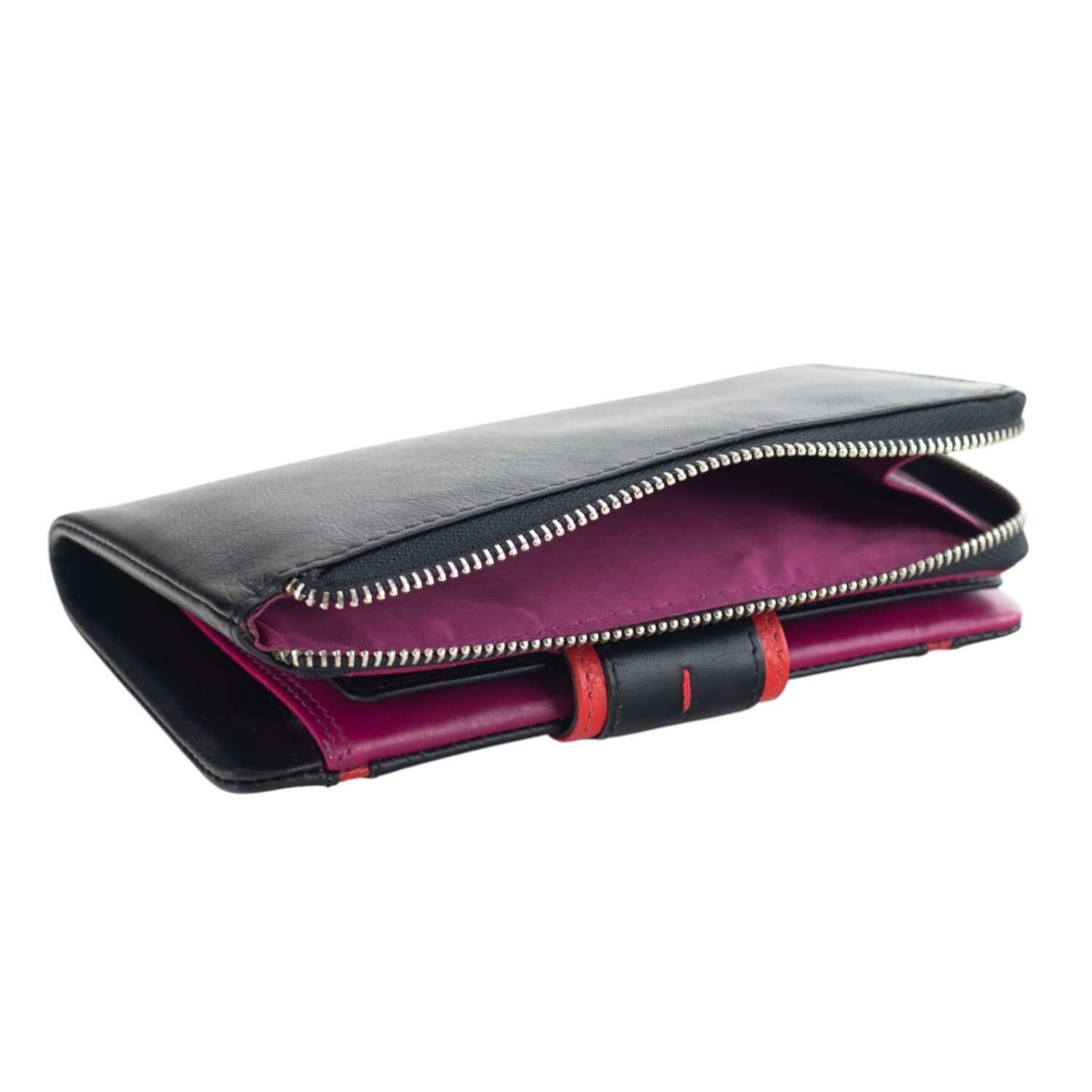 Elegante, sobrio y con un toque de intensidad. El contraste entre negro profundo y rojo cereza le da carácter y fuerza. Un billetero para mujeres que brillan con su propio estilo, incluso en la noche.
