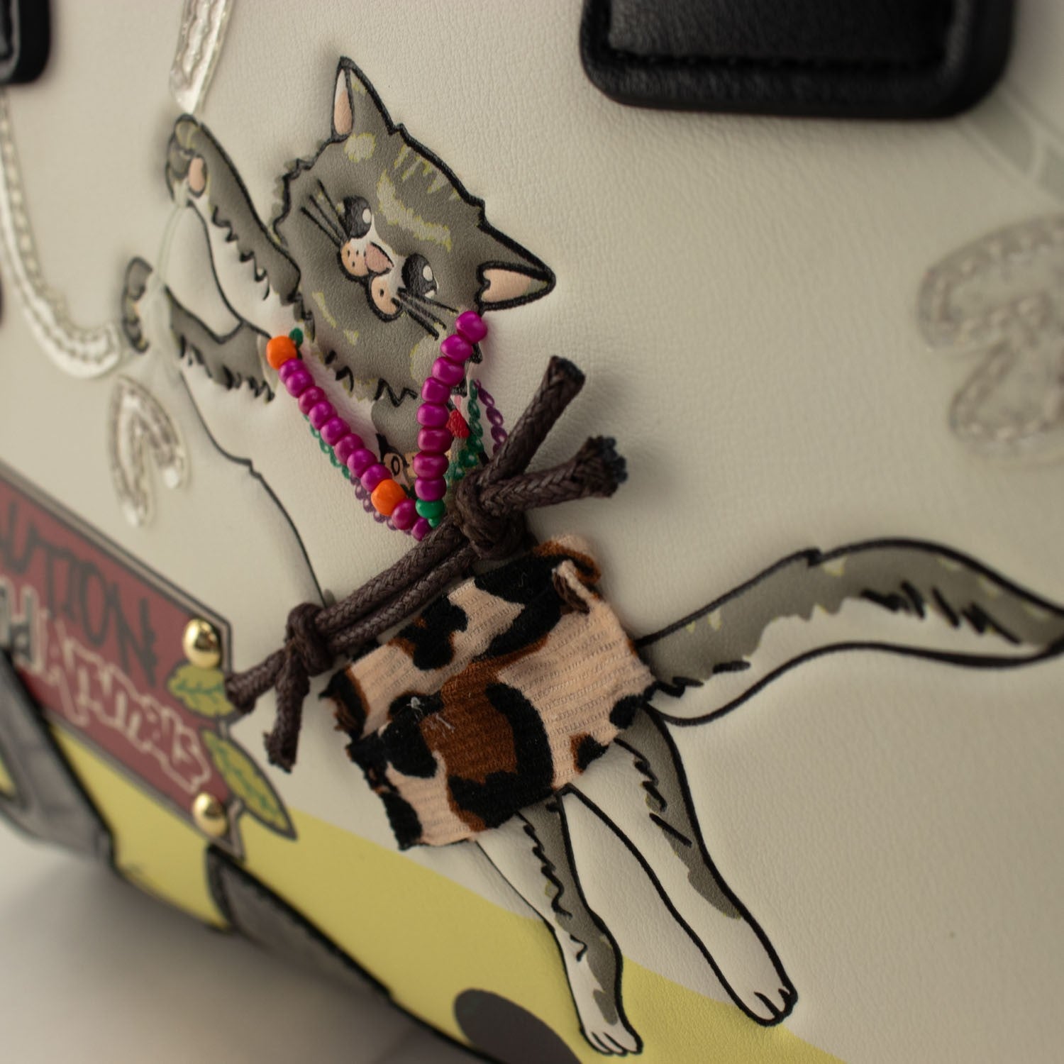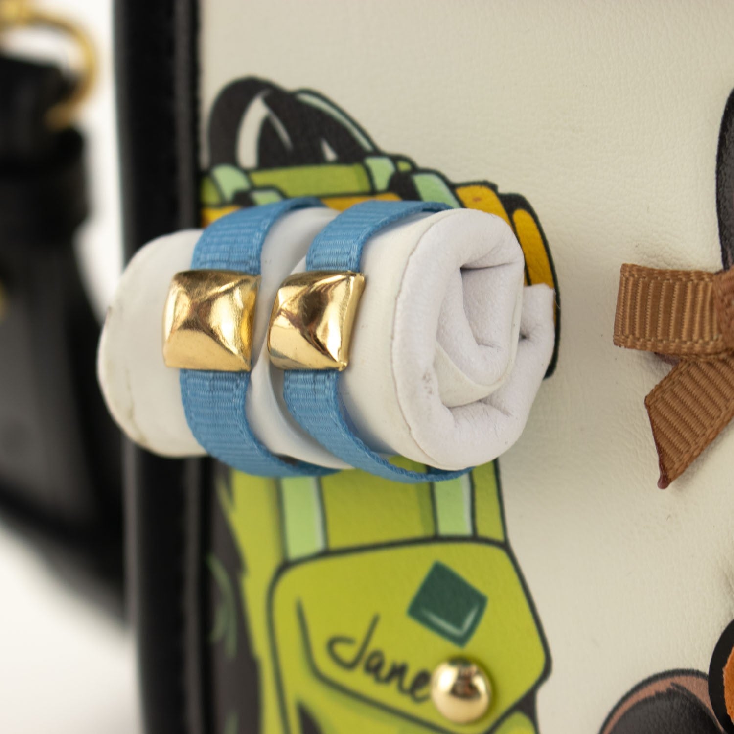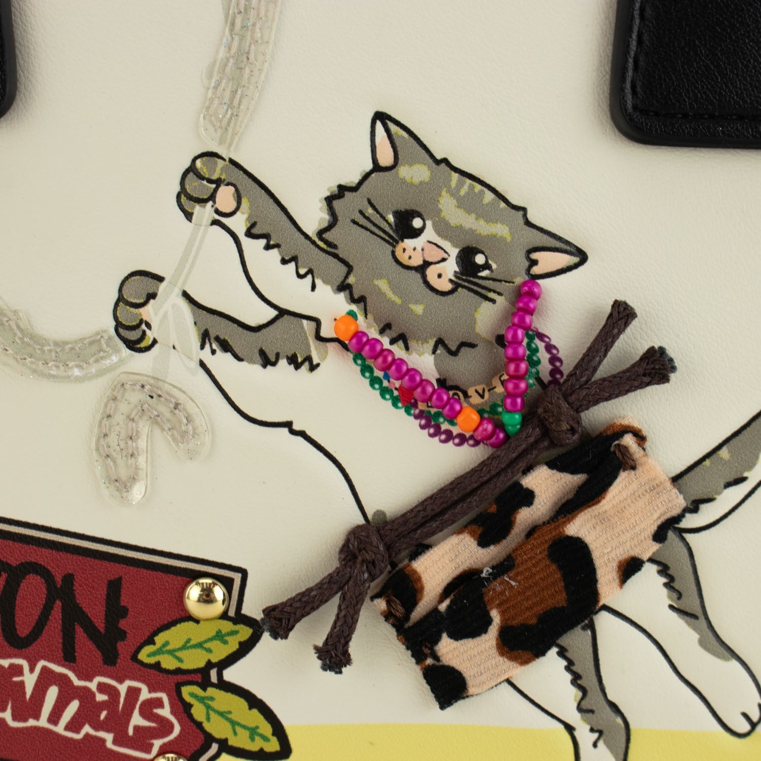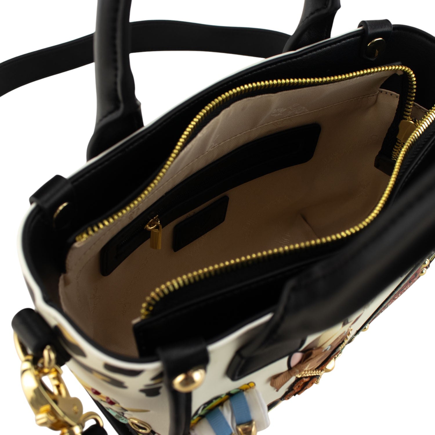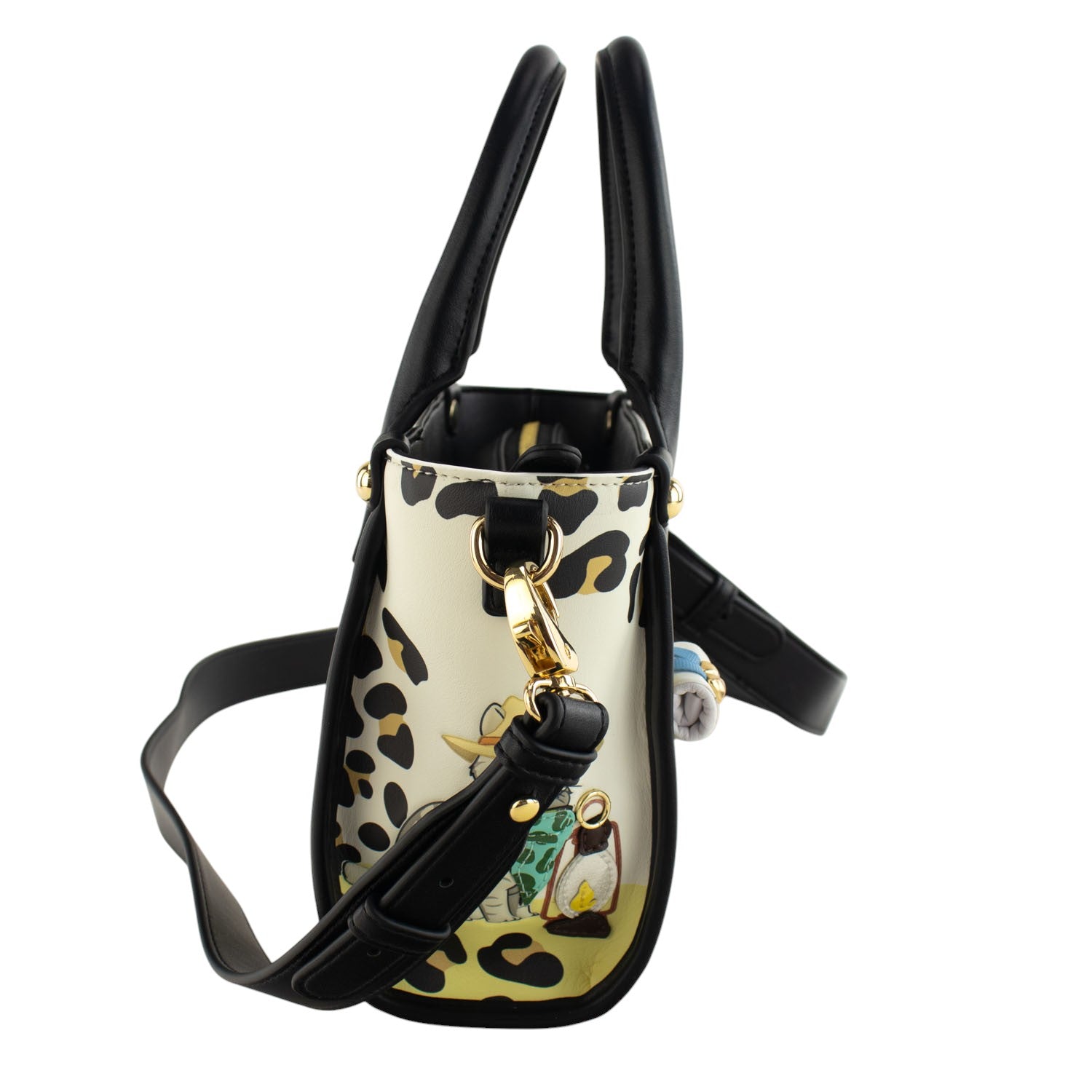 Braccialini nos sorprende con una nueva Colección super original con representación de aventuras. En este modelo de Bolso de mano Braccialini Allround Safari podrás ver representado un escenario en un safari. Este bolso pequeño con doble asa de mano y cinta para llevar al hombro tiene cierre de cremallera y está repleto de detalles.