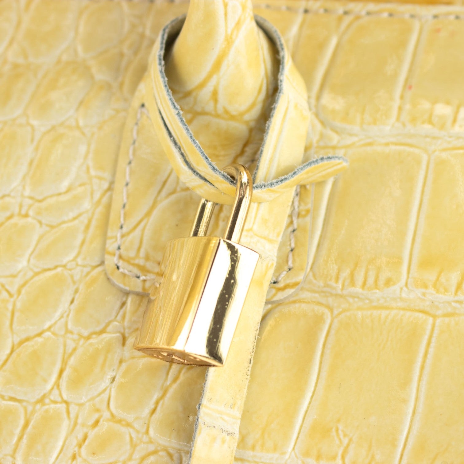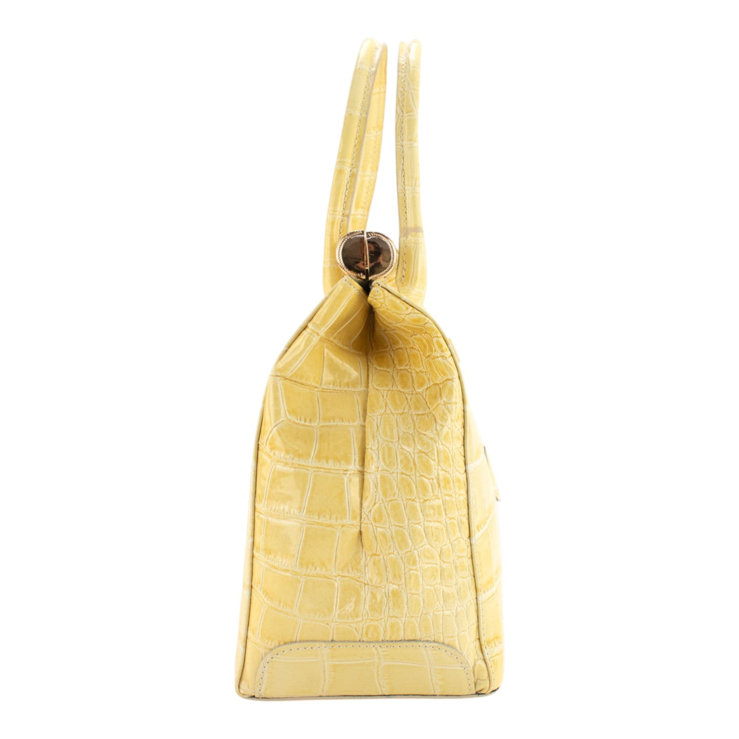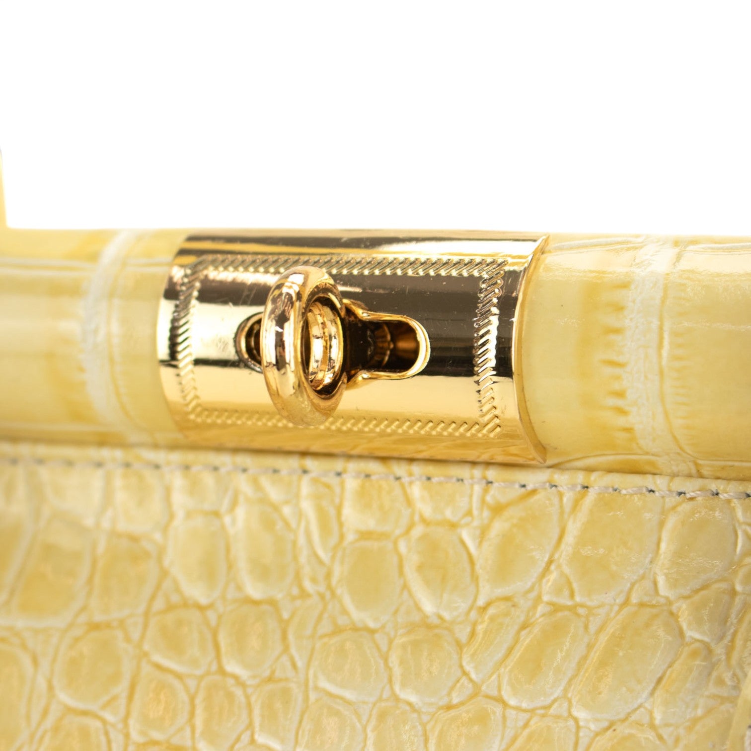 Bolso de mano en Piel Pregato Classic Special Croc Floral Amarillo mantequilla