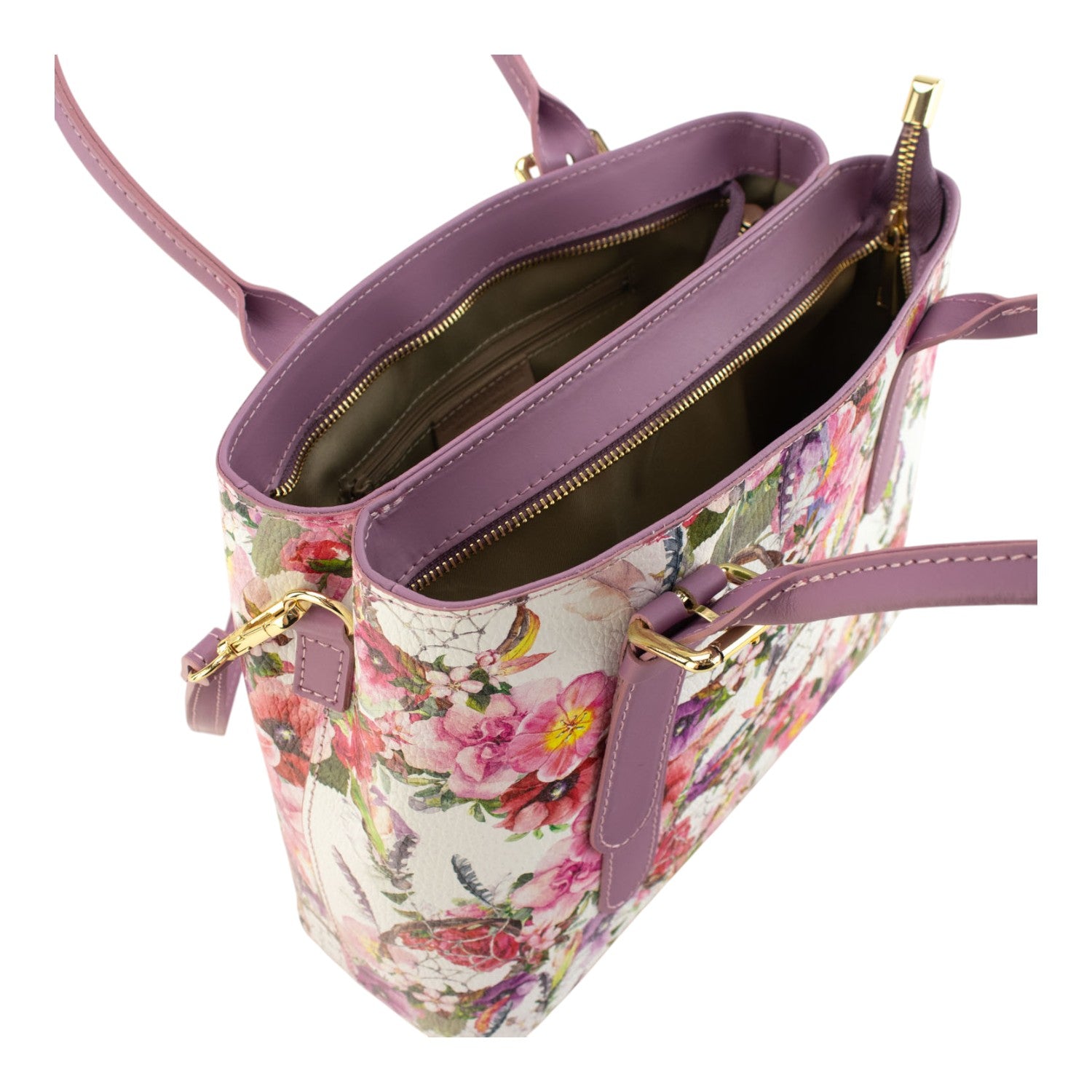 Un bolso muy original para lucir a diario, realizado en Piel 100% genuina vacuno italiana, este bolso está hecho en Italia con una excelente manufactura y calidad, tiene doble compartimento interior amplio con cierre de cremallera y cinta de bandolera adicional ajustable, siendo muy cómodo tanto como bolso de mano así como bandolera.