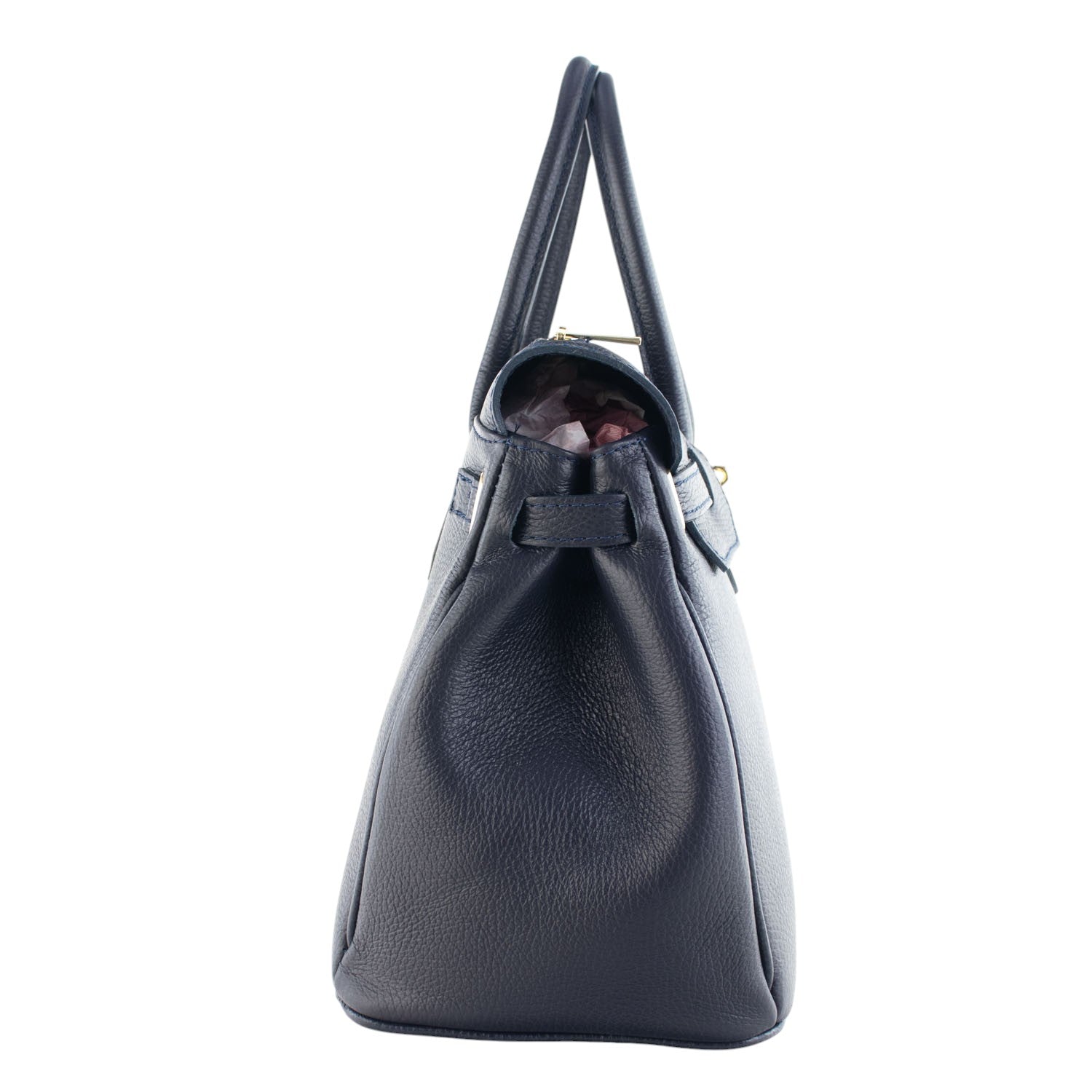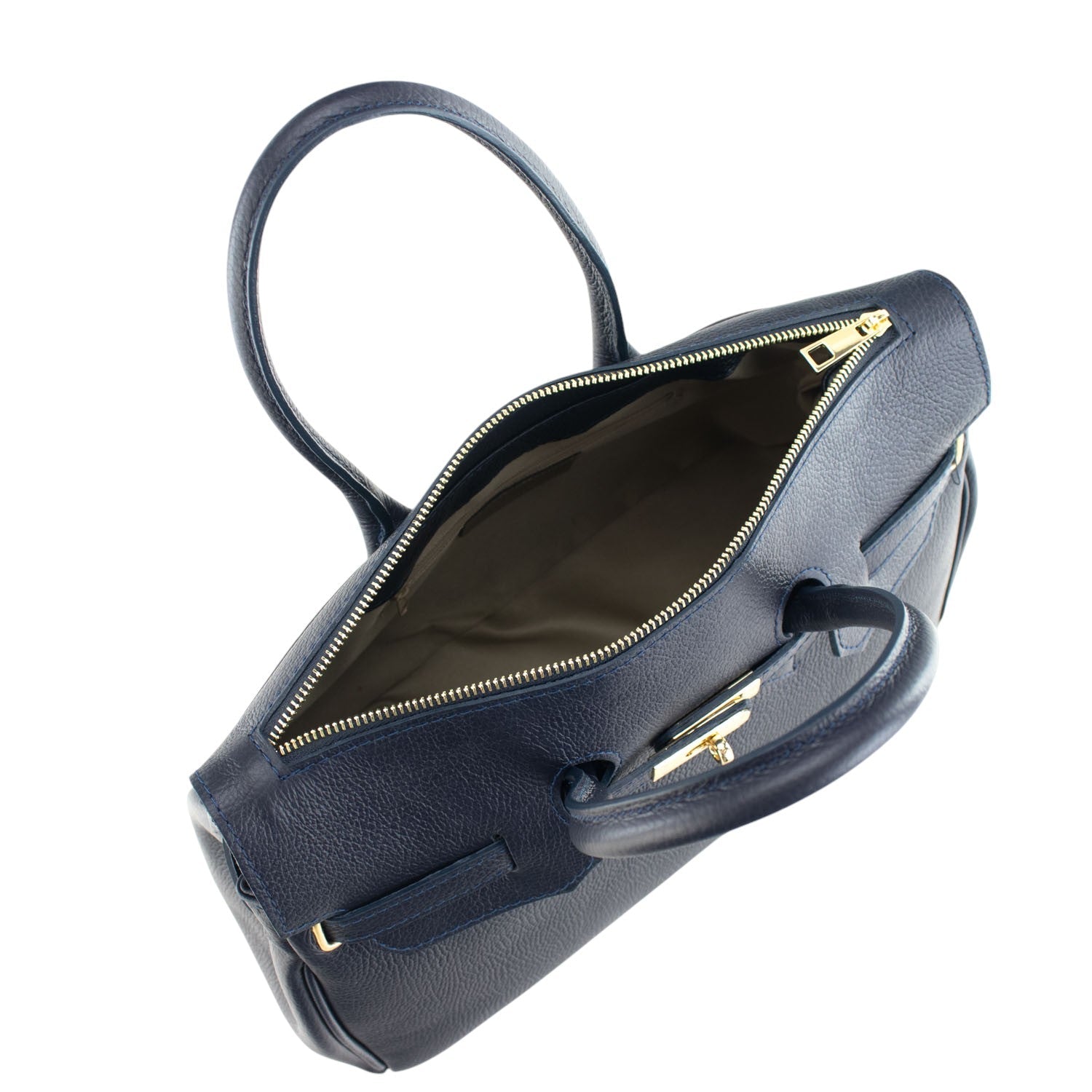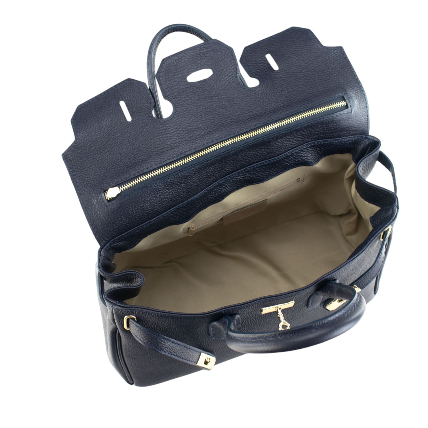 Un bolso muy original para lucir a diario, realizado en Piel 100% genuina vacuno italiana, este bolso está hecho en Italia con una excelente manufactura y calidad, tiene un compartimento interior amplio y cierre de broche además de un cierre superior con cremallera para facilitar el acceso al compartimento principal. Dispone de cómodas asas para llevar de mano.