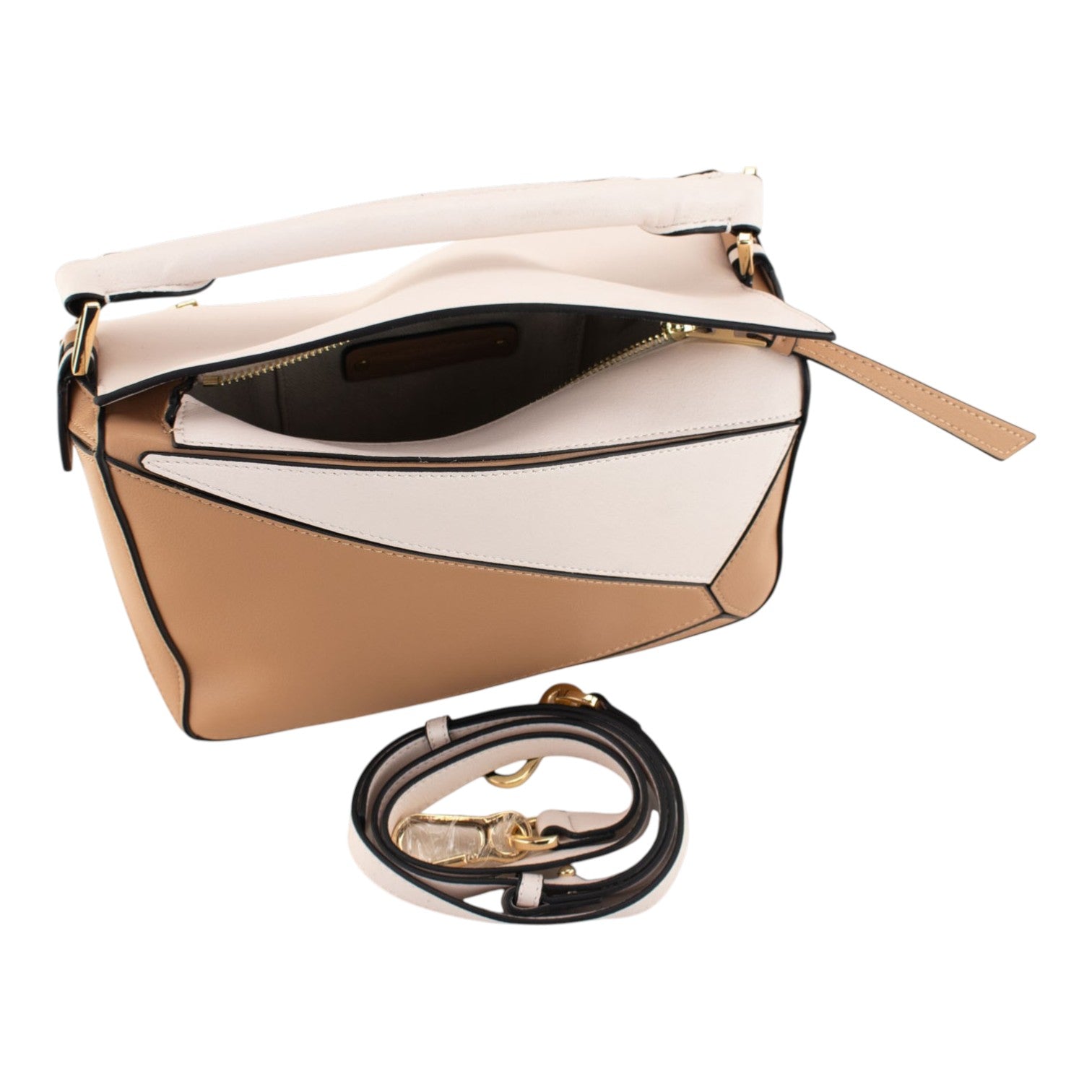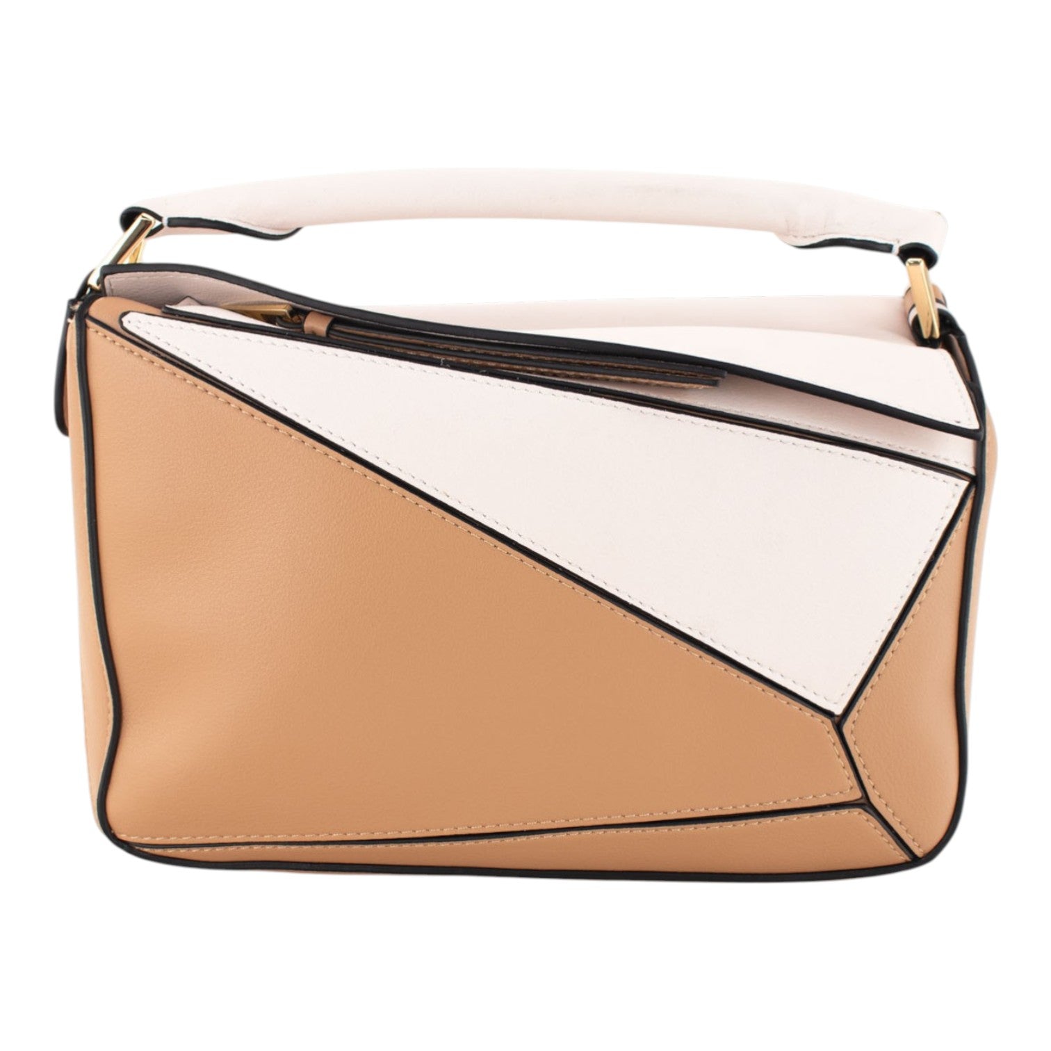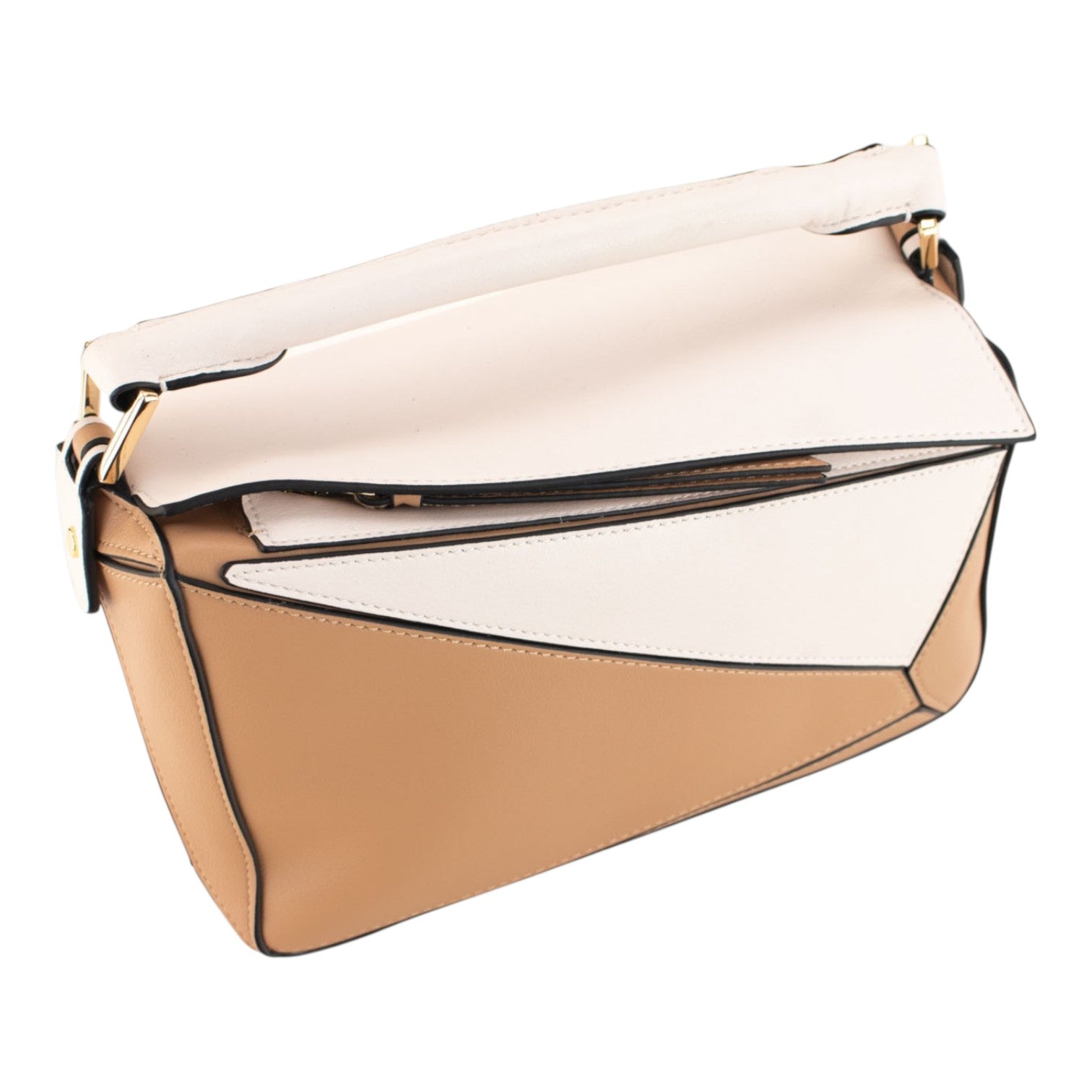 Bolso de Piel Pregato Modena Camel Blanco Bicolor