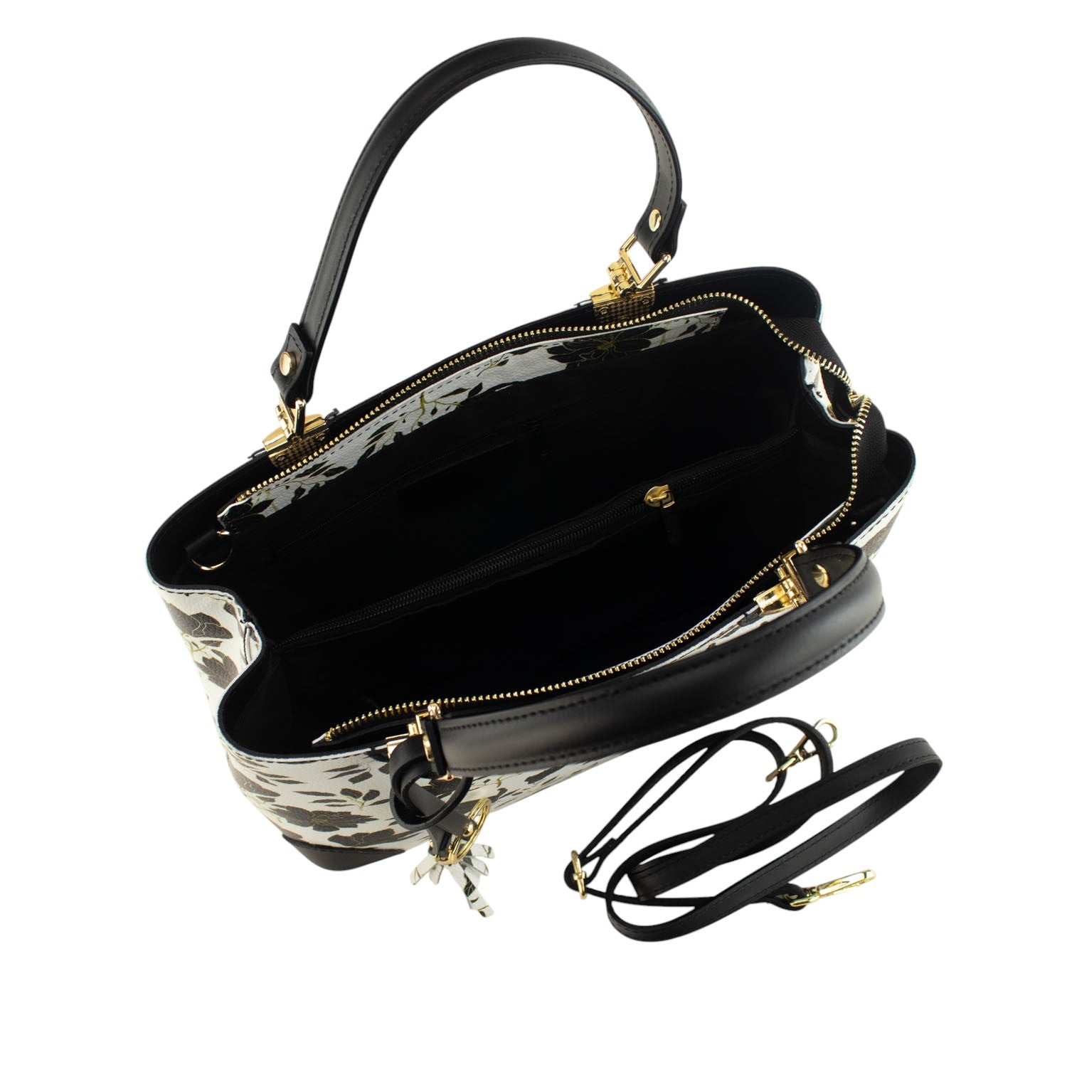 Bolso en piel Pregato Eleganza Fiori Neri Negro