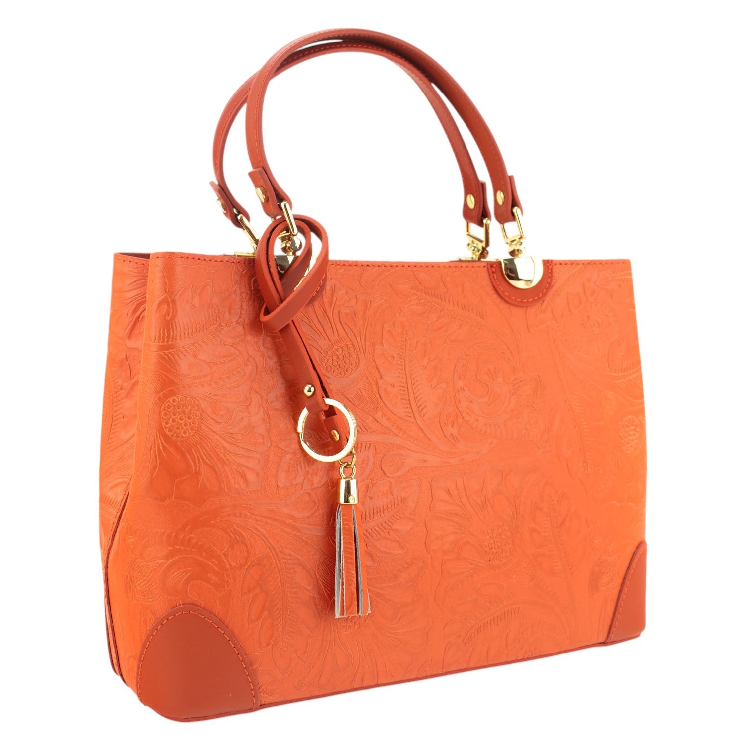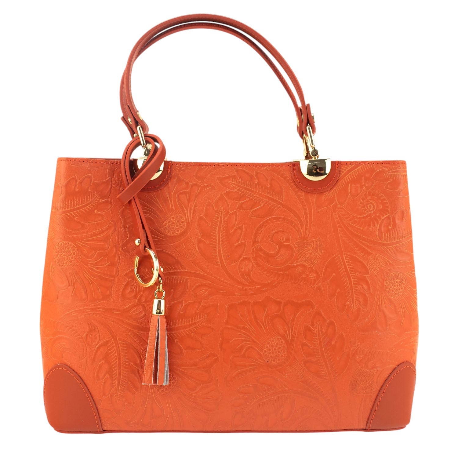 Bolso en piel Pregato Eleganza Grabado Naranja - KimondoShop