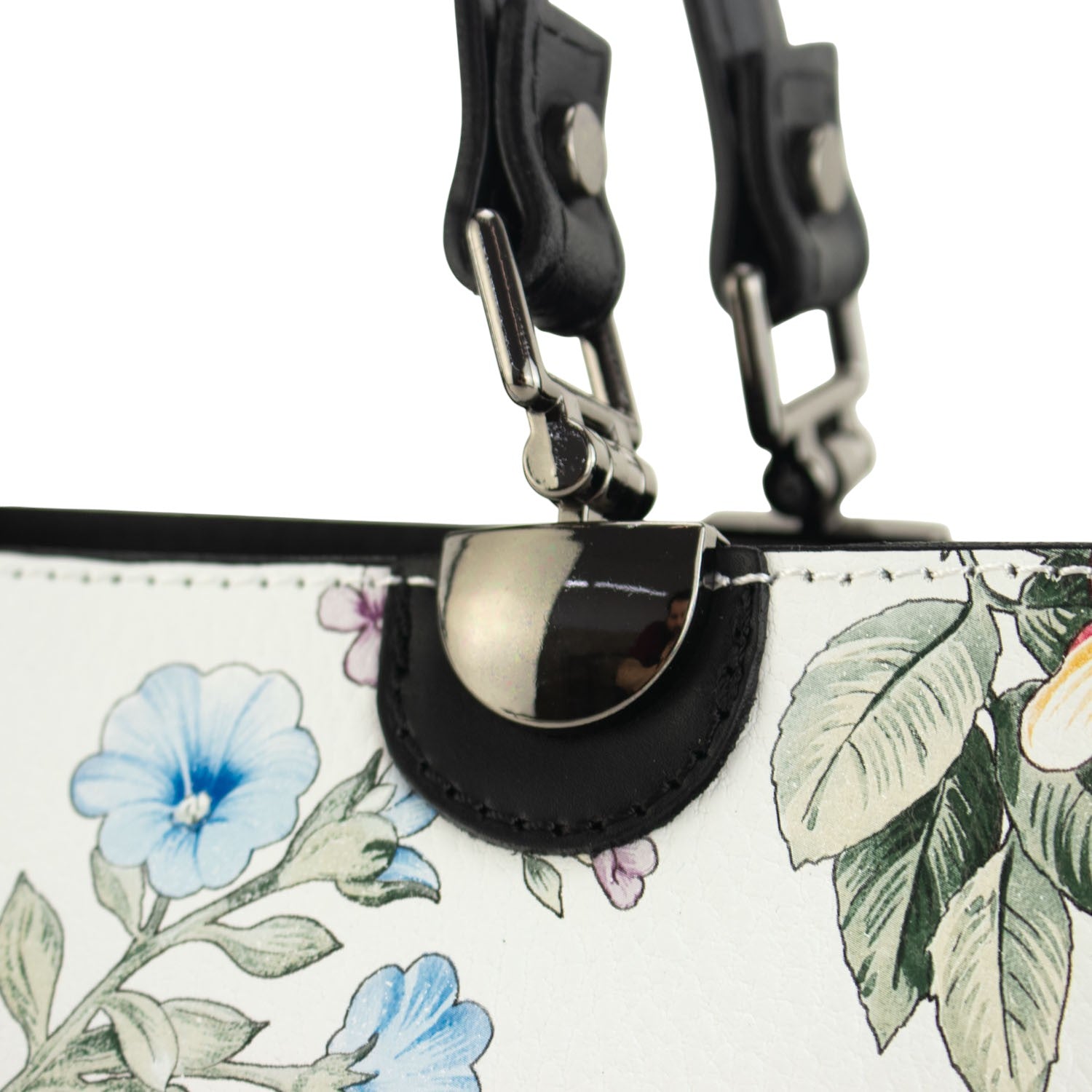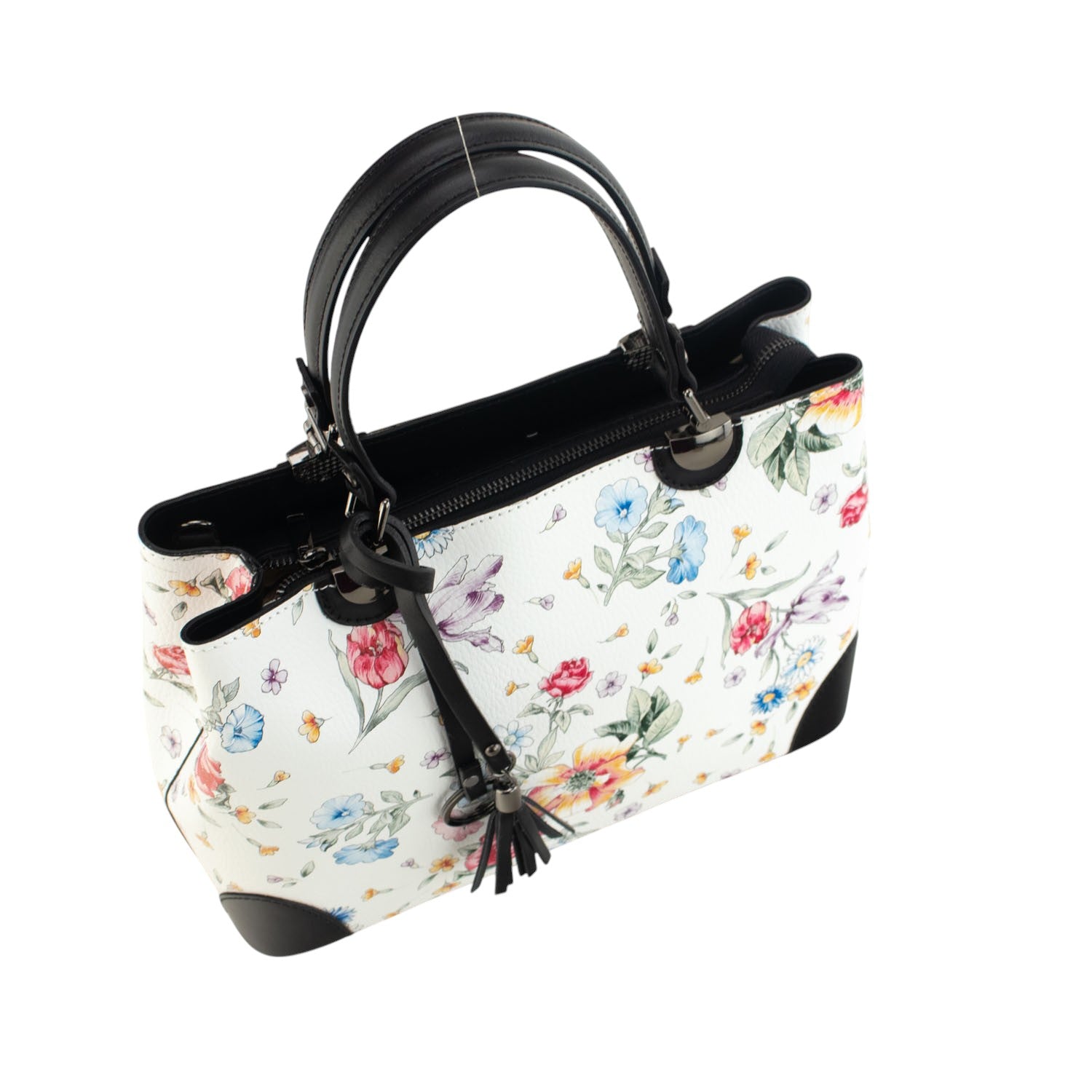 Bolso en piel Pregato Eleganza Negro Flores azules - KimondoShop