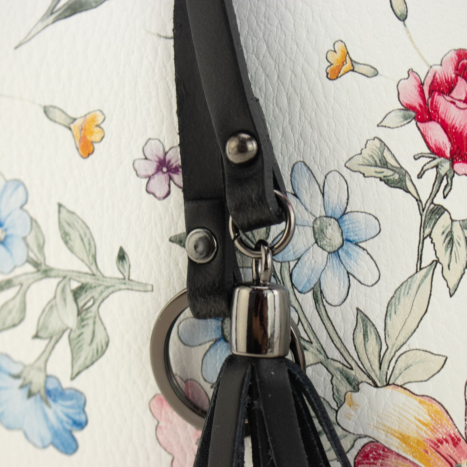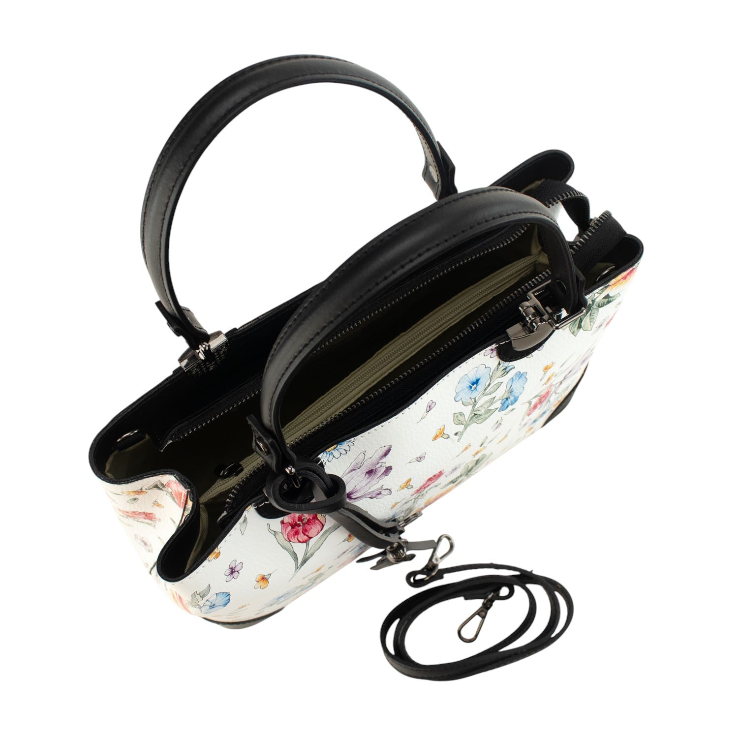 Bolso en piel Pregato Eleganza Negro Flores azules