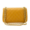 Un bolso super original para lucir a diario, realizado en Piel 100% genuina vacuno italiana, este bolso está hecho en Italia con una excelente manufactura y calidad, tiene un cierre broche metalizado en tono dorado muy original, con una preciosa cinta de cadena en tonos dorados para llevar cruzado o al hombro.
