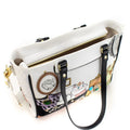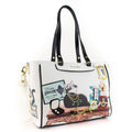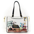 Un bolso estilo shopper con doble asa para llevar al hombro y un compartimento interior amplio con cierre de cremallera. Incorpora tachas de protección en el suelo en tono dorado. Su exterior es un espectáculo de color que detalla los elementos característicos de la Joyería Gatuna más lujosa con bordados y brillantes que realzan el diseño al máximo nivel ¡Te encantará!