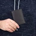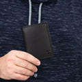 Cartera de hombre MyWallets vertical pequeña en tonos lisos decorada con detalles en costura de doble punta con logo grabado en la Piel, Cartera muy completa con espacio para 14 tarjetas, con doble ventanilla para carnet de identidad o fotografía, espacio para billetes a lo largo de la cartera con doble compartimento