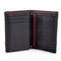 Combina esta Cartera vertical monedero MyWallets Sport, una cartera vertical con múltiples espacios para organizar tus tarjetas, billetes y monedas por separado. Acabado en color negro con líneas en color rojo y elegantes pespuntes.