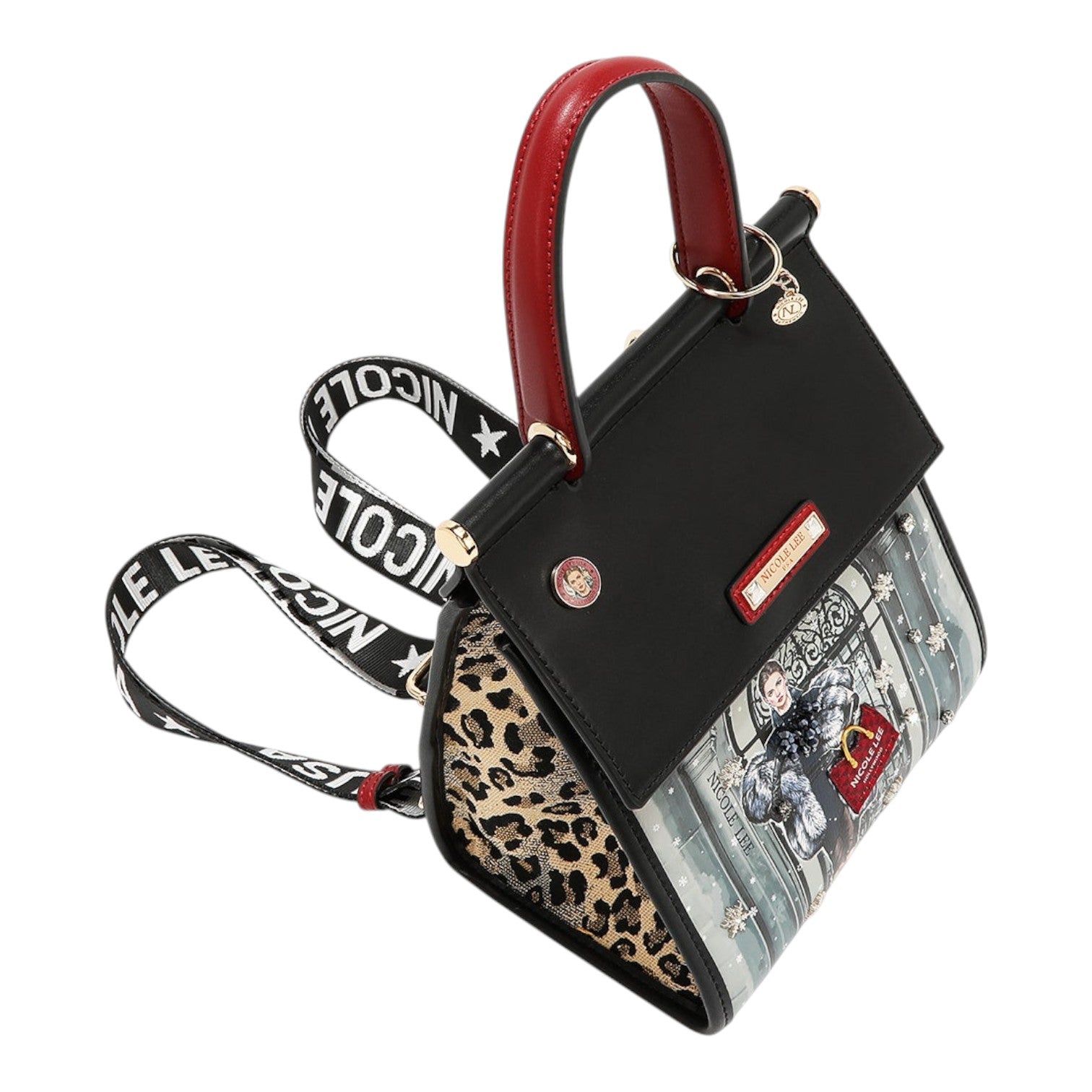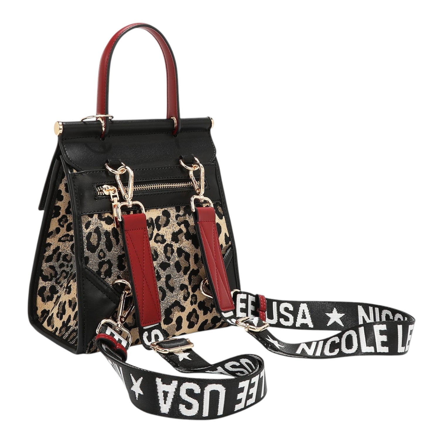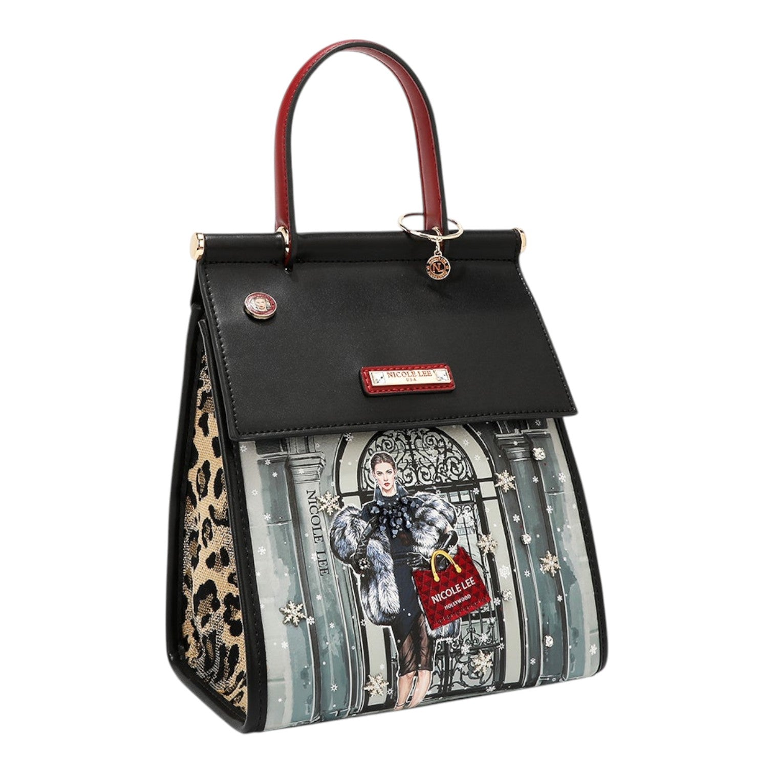 Ideal Mochila Nicole Lee de la nueva colección SnowFlake, con asas regulables a la altura deseada, cierre de solapa con broche imantado, cremallera posterior y decoraciones y apliques con detalle de laterales en animal print.