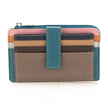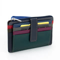 Este monedero con tarjetero es ideal para llevar todas tus tarjetas en poco espacio, tiene cierre de broche y espacio para 10 tarjetas, además incluye un compartimento con cierre de cremallera, acabado en diferentes tonos que lo hacen colorido y original y realizado en piel 100%.