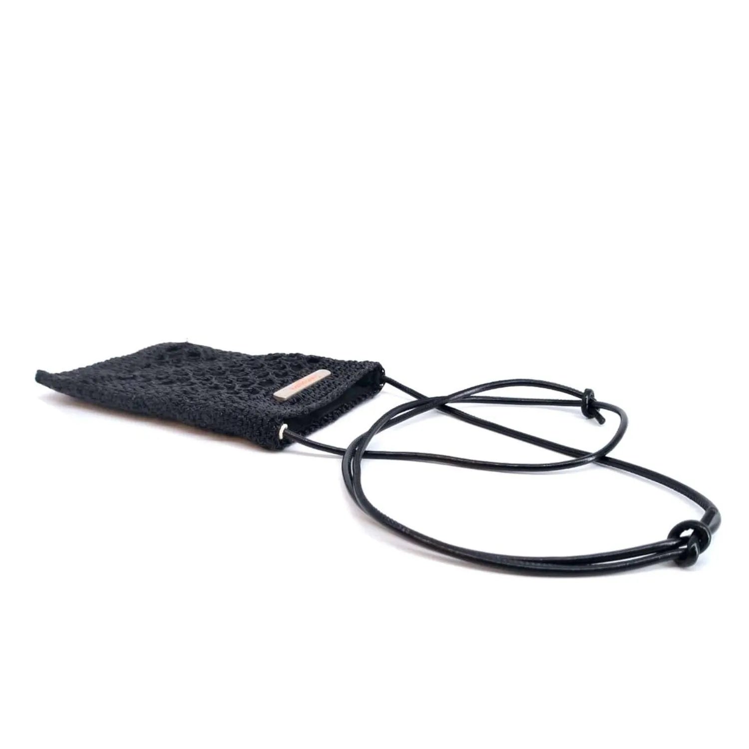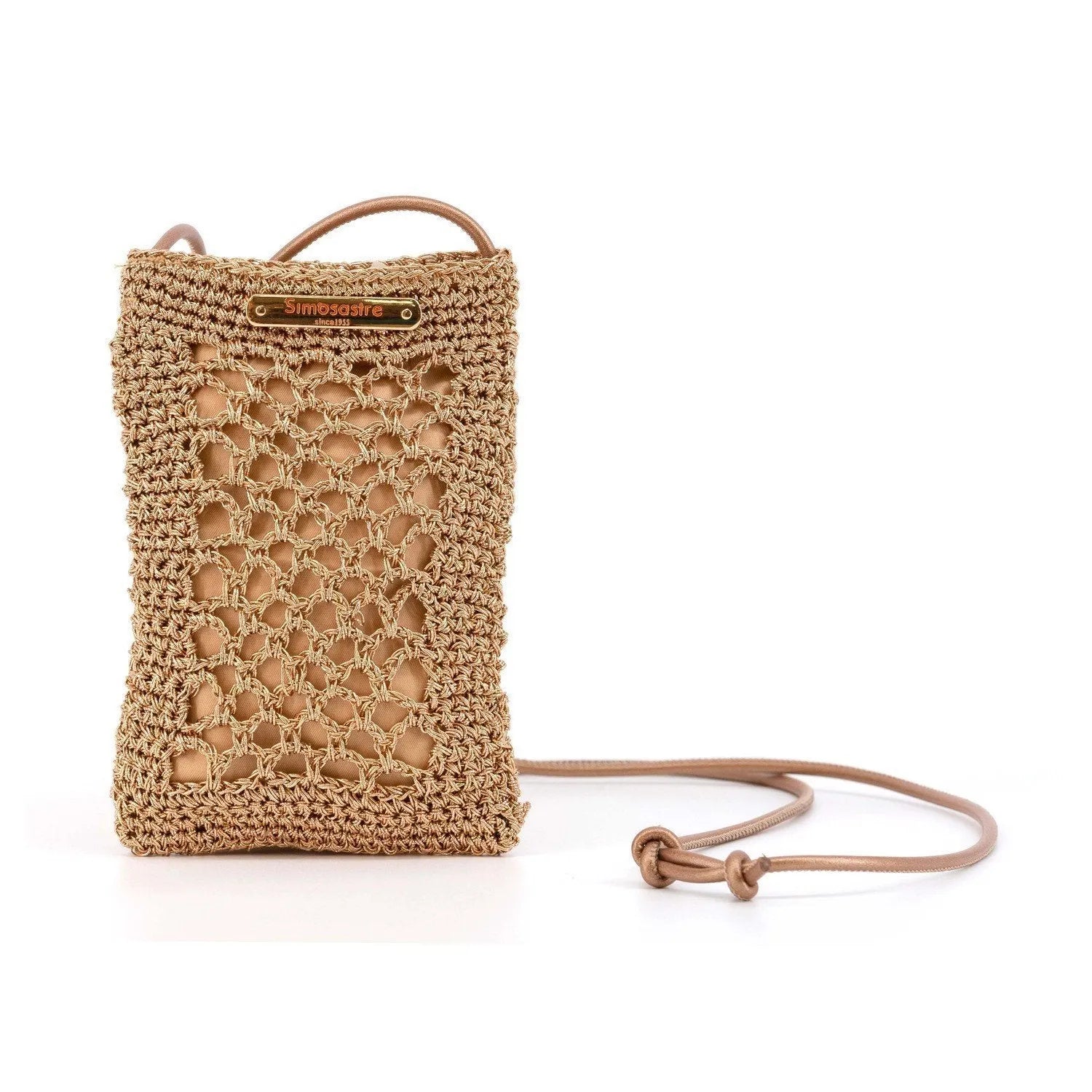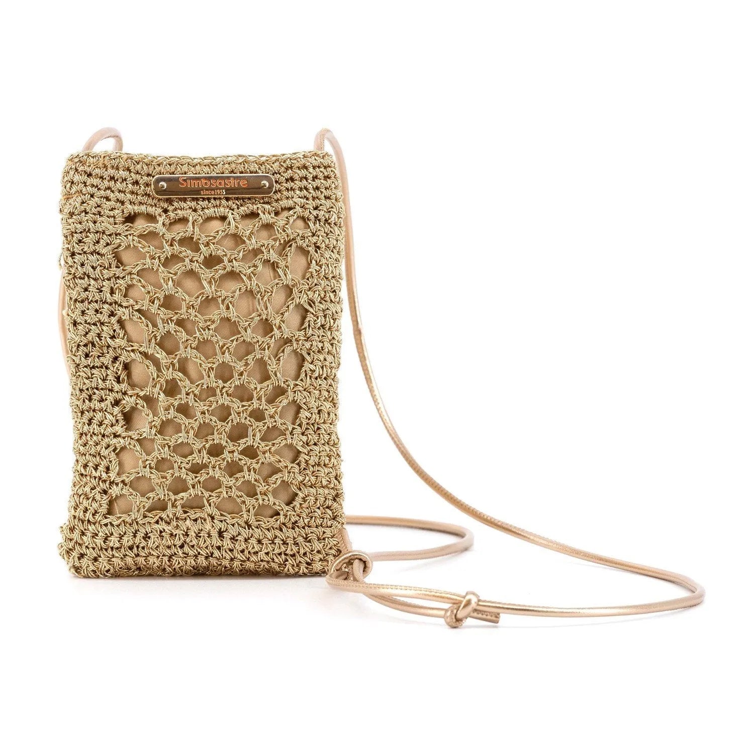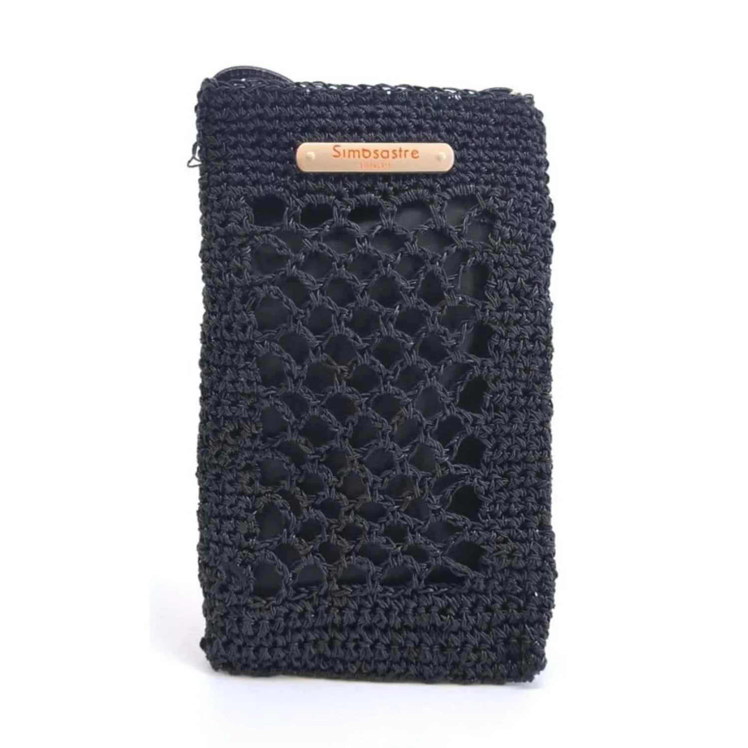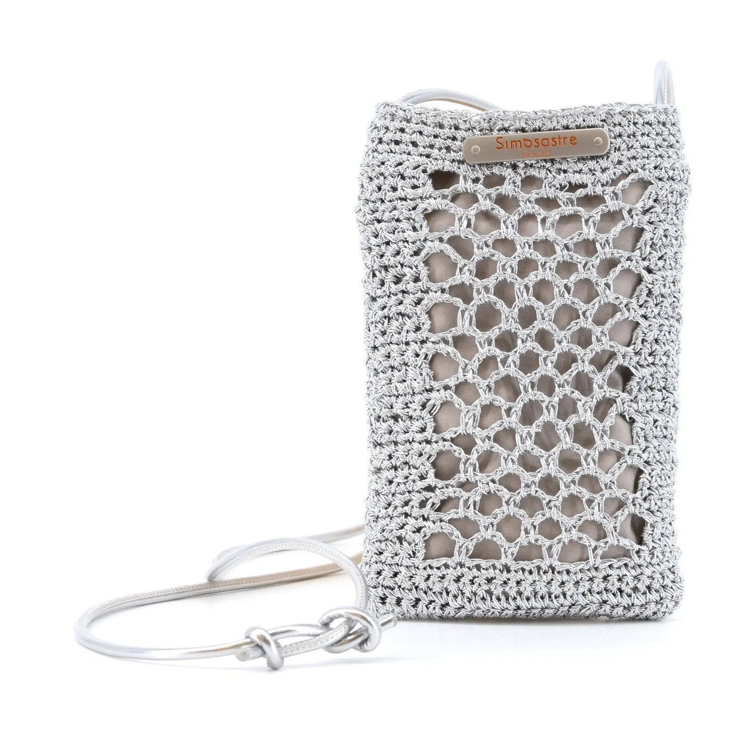 Quieres llevar un bolsito mini con lo necesario? Este porta móvil Simosastre modelo Lyon es ideal , está hecho con hilos metalizados, tiene cierre imantado, forro al tono, asa de bandolera y logo metalizado