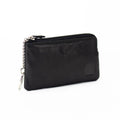 Tarjetero de hombre MyWallets en tonos lisos decorada con detalles en costura de doble punta con logo grabado en la Piel, con espacio para 4 tarjetas, bolsillo para monedas con cierre de cremallera con porta llaves