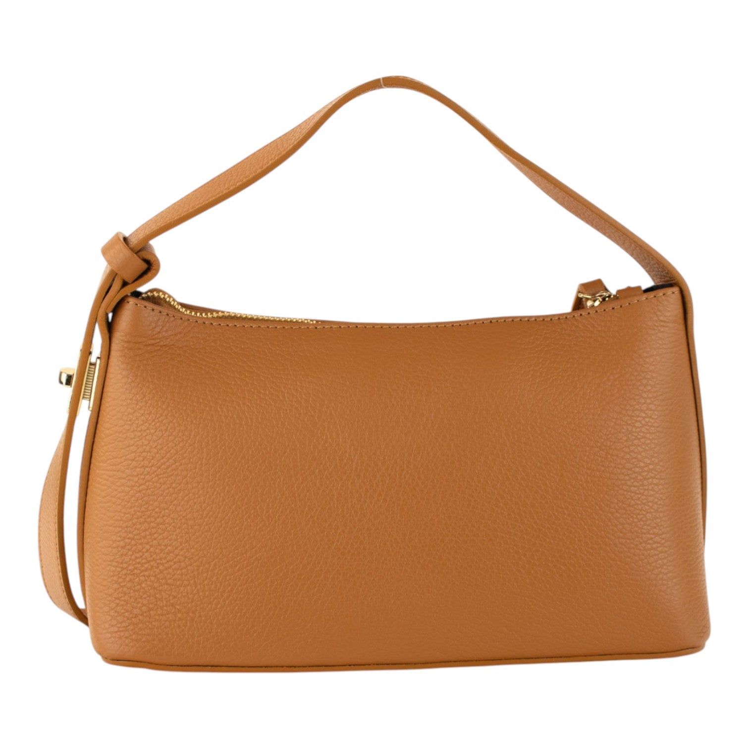 Su diseño estructurado y minimalista incorpora un cierre superior de cremallera que mantiene tus pertenencias seguras, mientras que su asa ajustable te permite llevarlo cómodamente al hombro o como bolso de mano, adaptándose a cada momento con total elegancia.