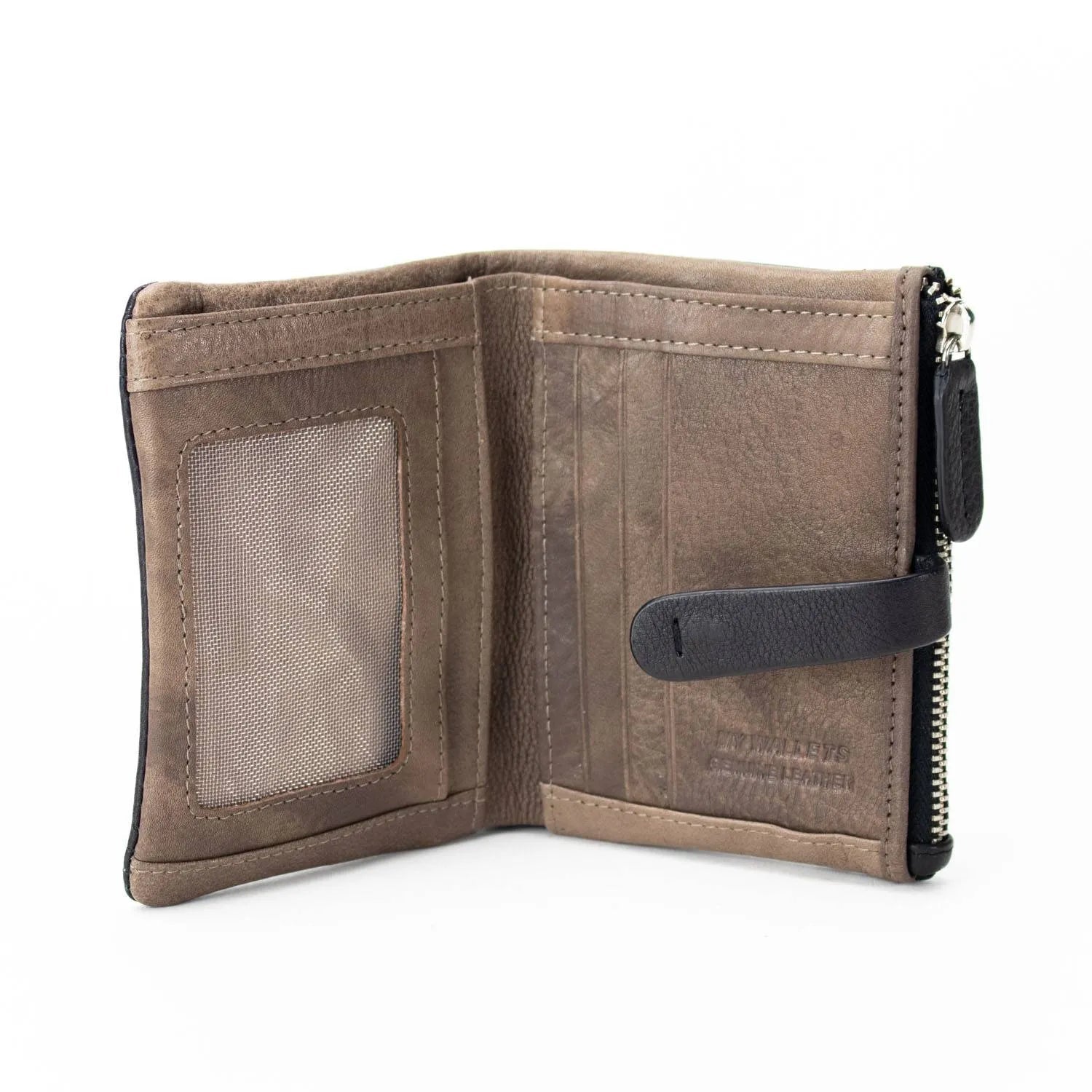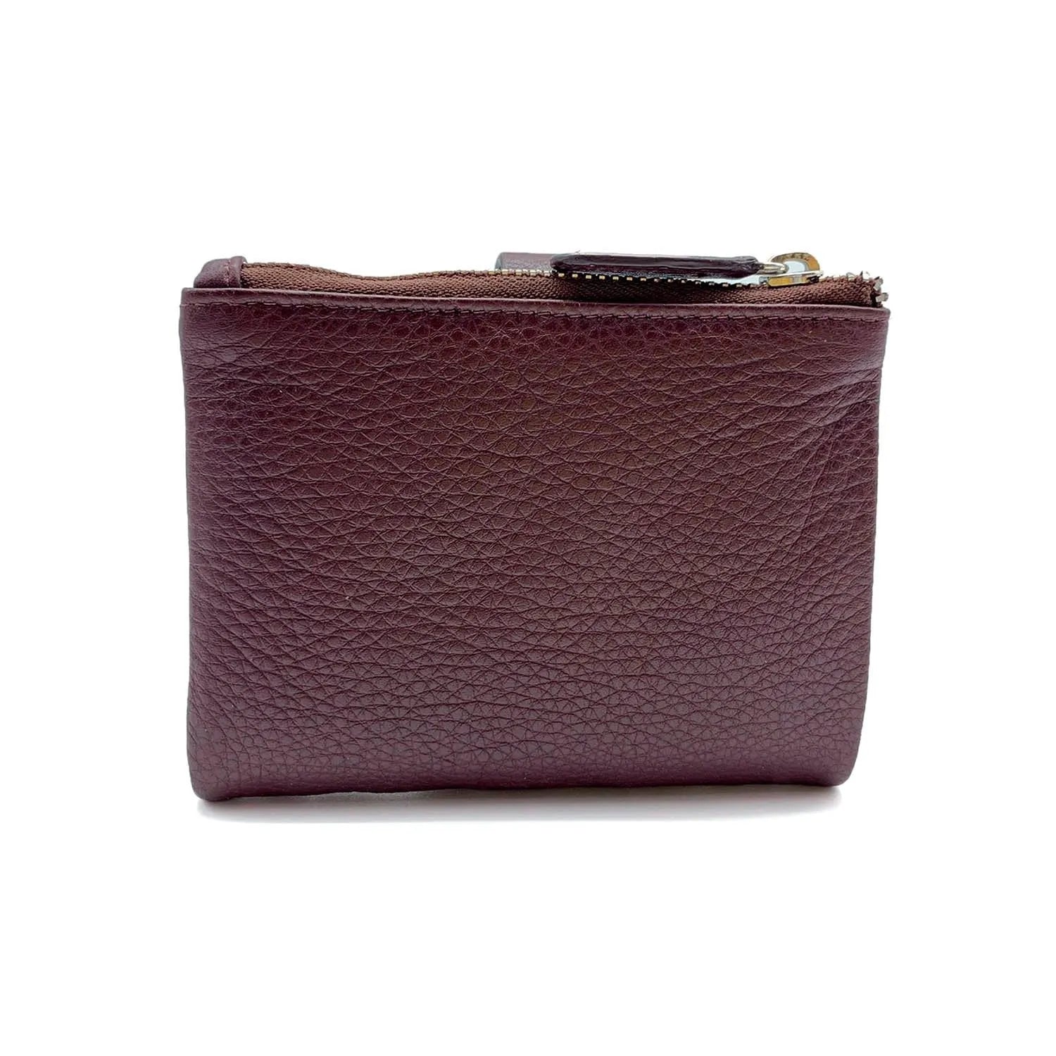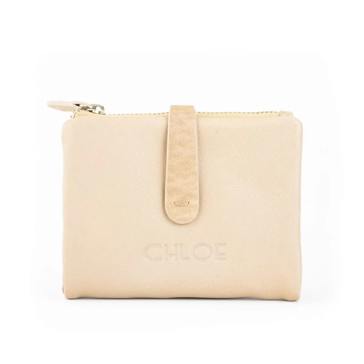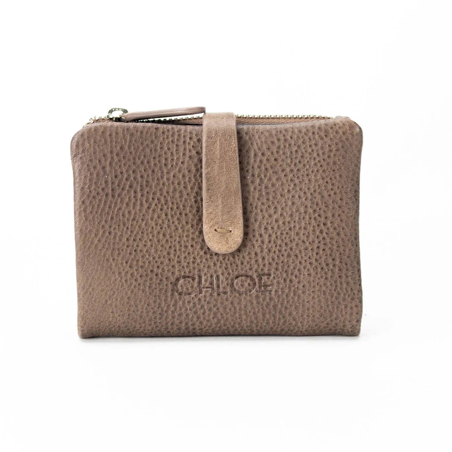Carteira pequena ByChloe feminina com fecho de correr com acabamento soft touch com logótipo gravado no couro, uma carteira muito compacta com espaço para 3 cartões, janela transparente para cartão de identificação ou foto, bolsos interiores, espaço para notas juntamente com bolso com fecho de correr adicional e bolso para moedas separado com fecho de correr