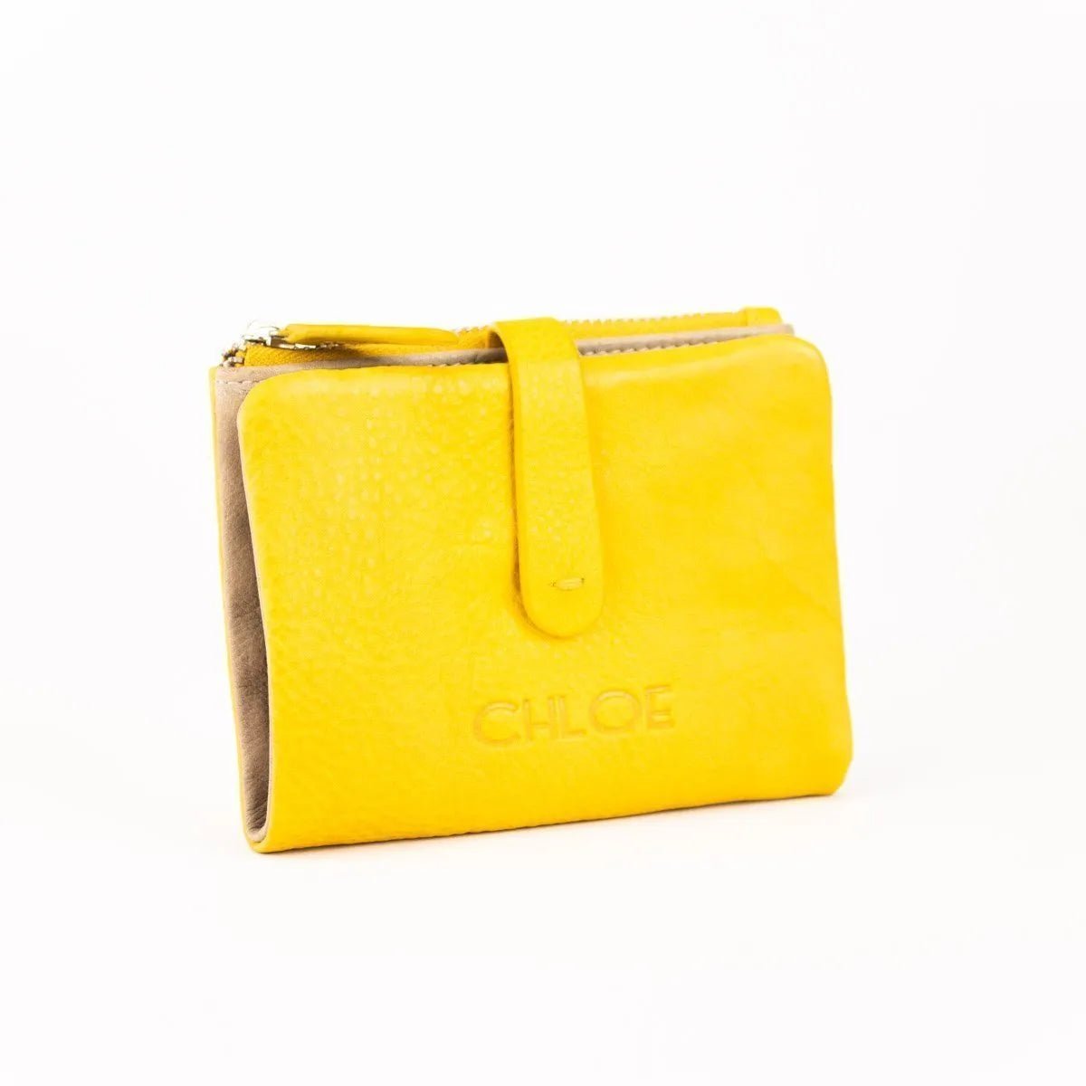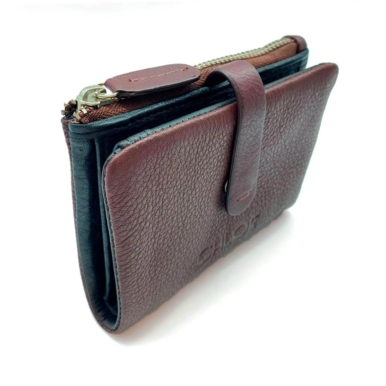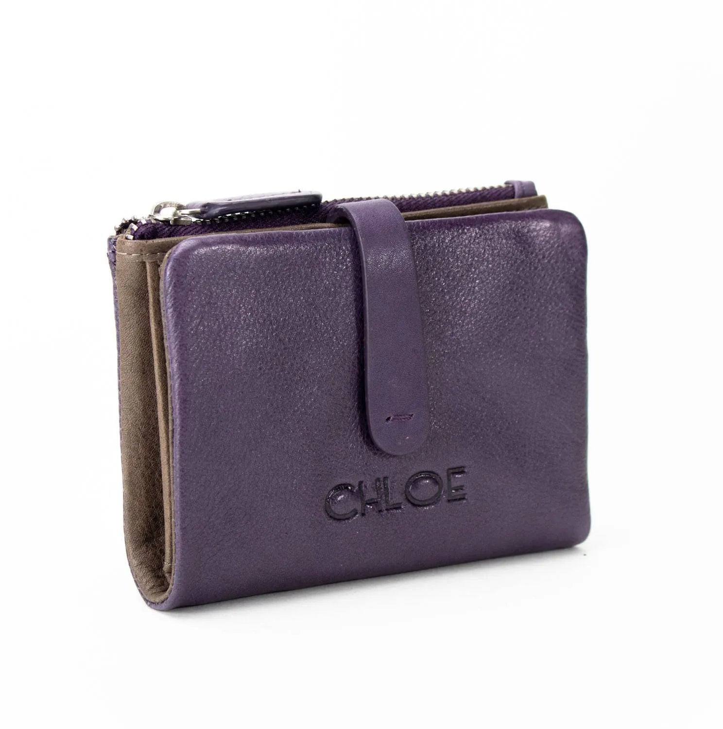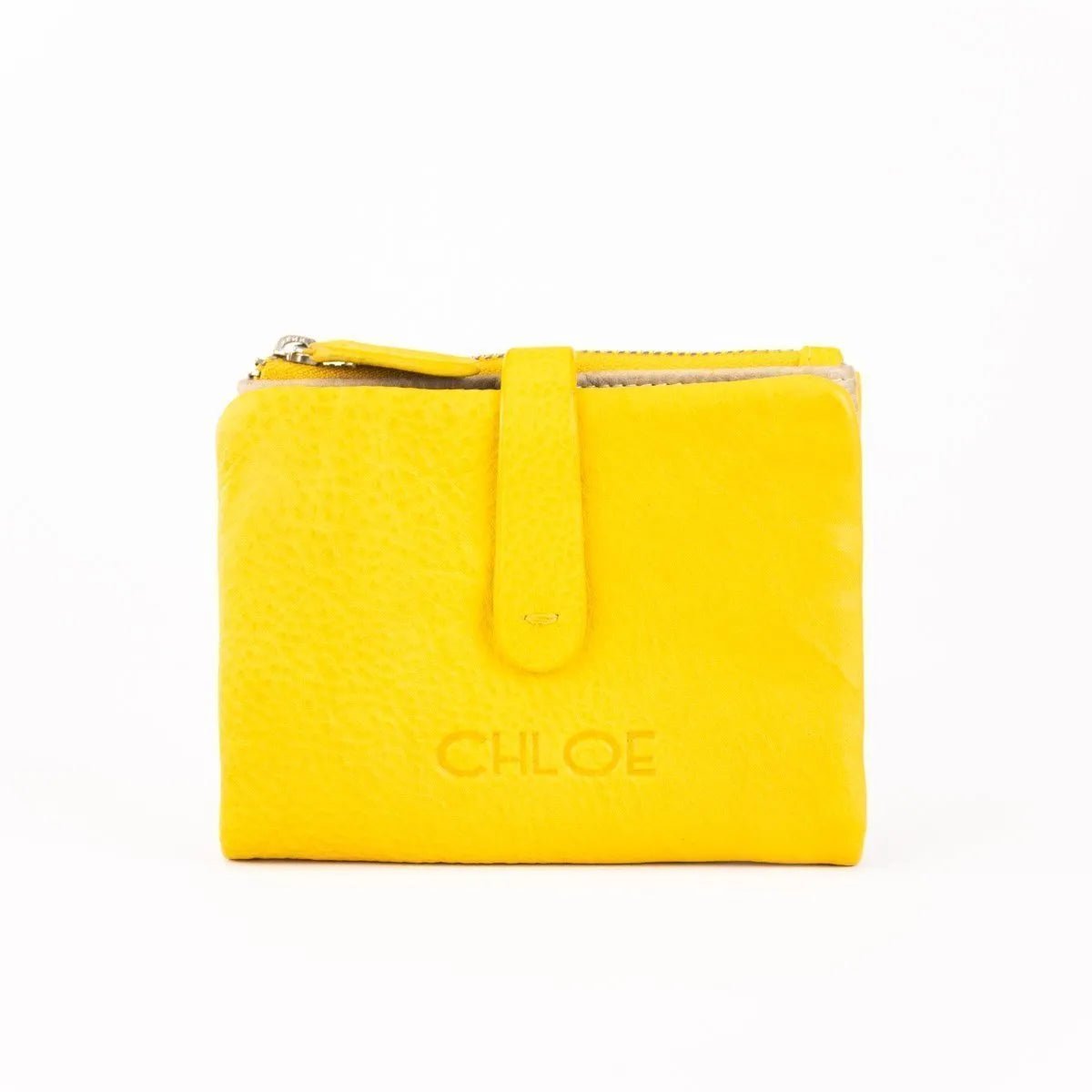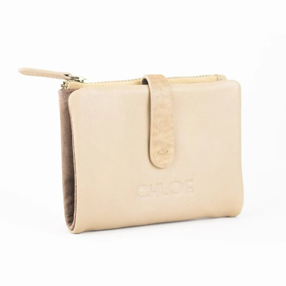 Carteira pequena ByChloe feminina com fecho de correr com acabamento soft touch com logótipo gravado no couro, uma carteira muito compacta com espaço para 3 cartões, janela transparente para cartão de identificação ou foto, bolsos interiores, espaço para notas juntamente com bolso com fecho de correr adicional e bolso para moedas separado com fecho de correr