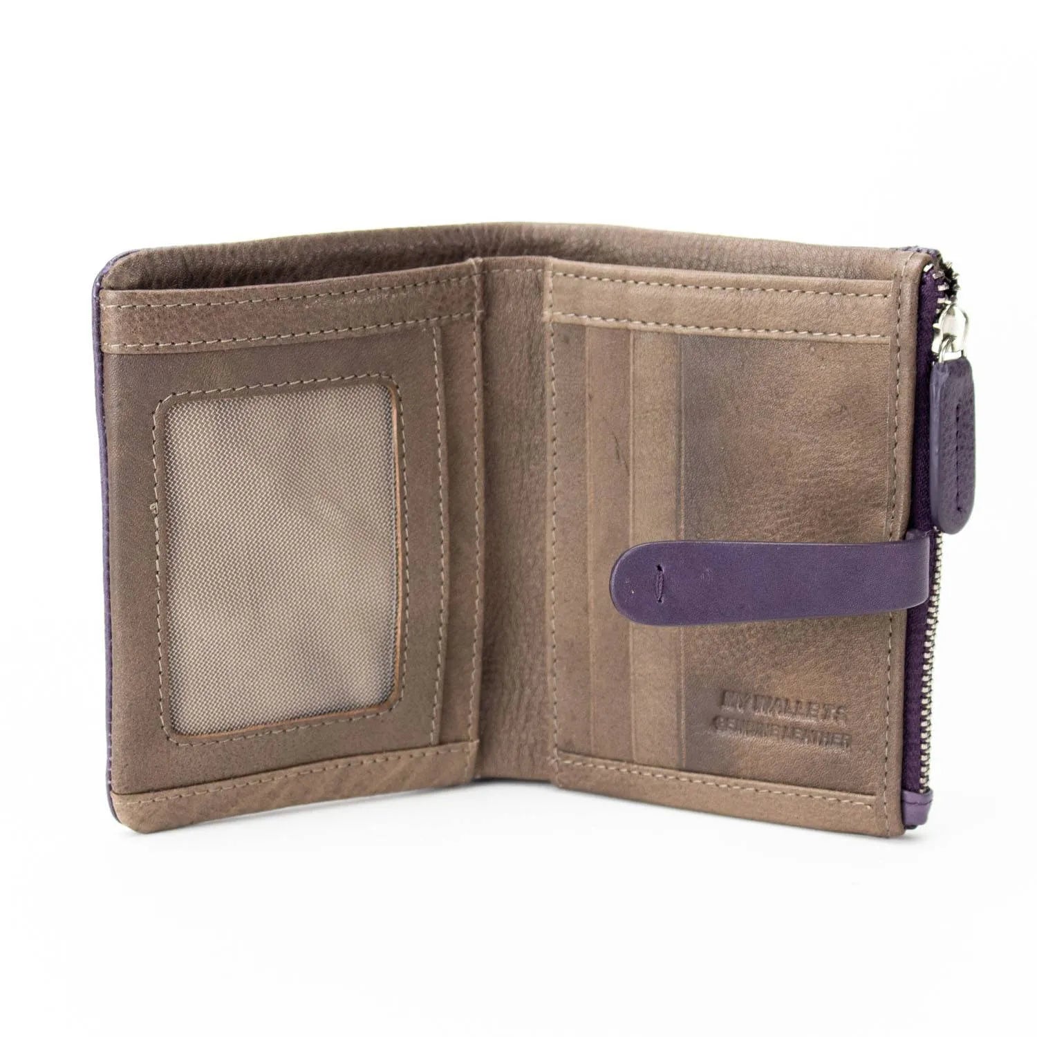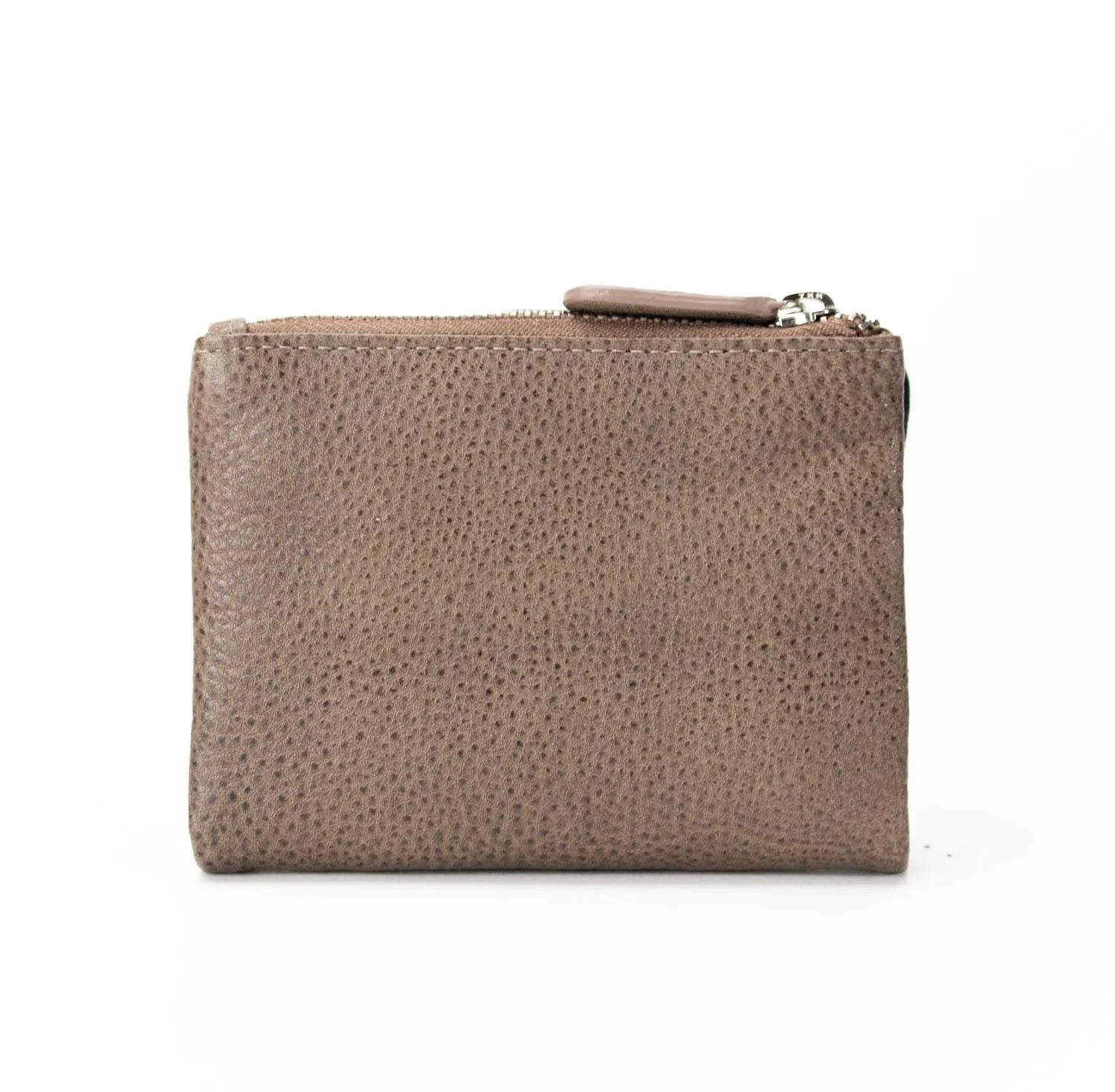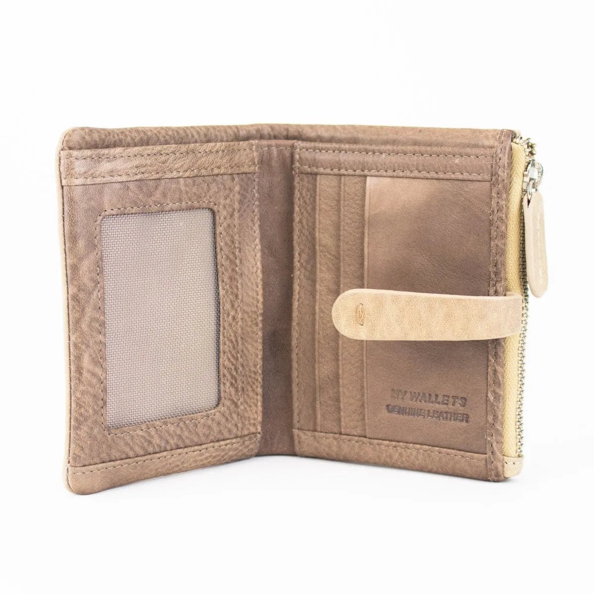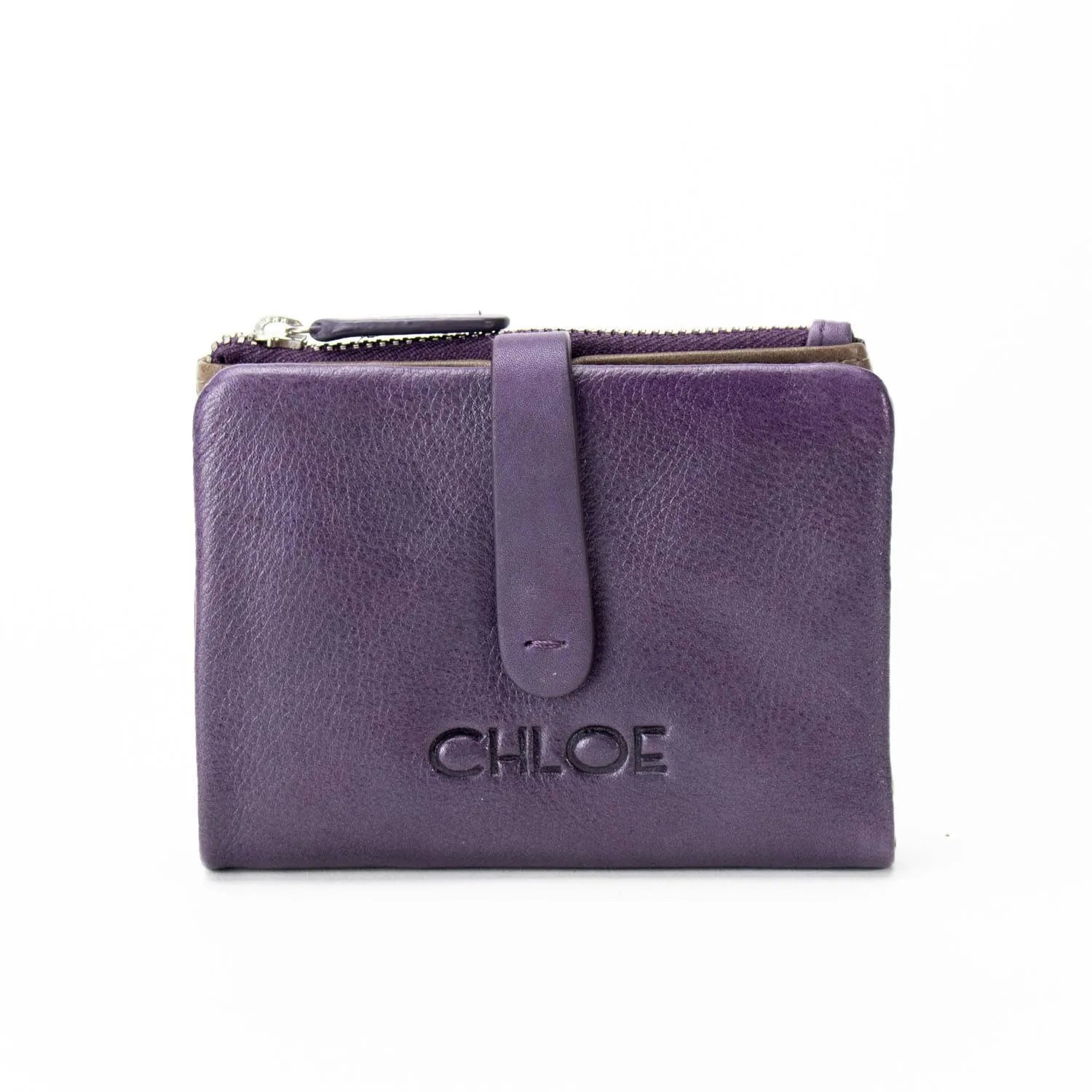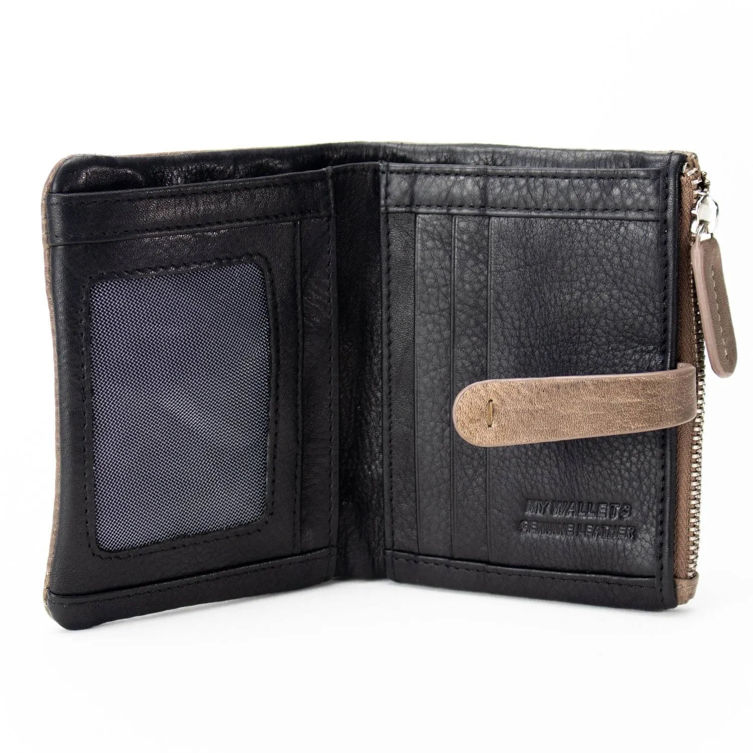 Carteira pequena ByChloe feminina com fecho de correr com acabamento soft touch com logótipo gravado no couro, uma carteira muito compacta com espaço para 3 cartões, janela transparente para cartão de identificação ou foto, bolsos interiores, espaço para notas juntamente com bolso com fecho de correr adicional e bolso para moedas separado com fecho de correr