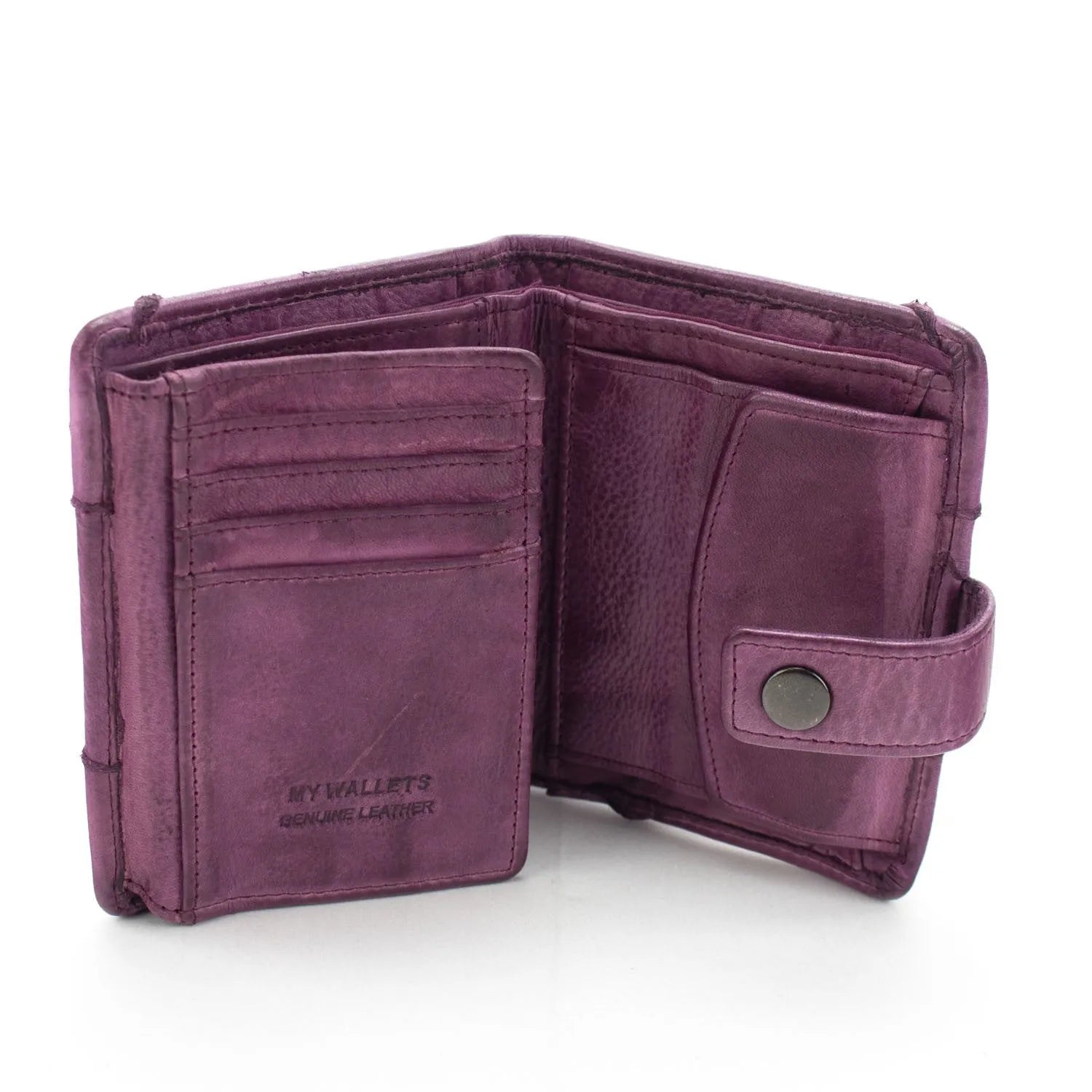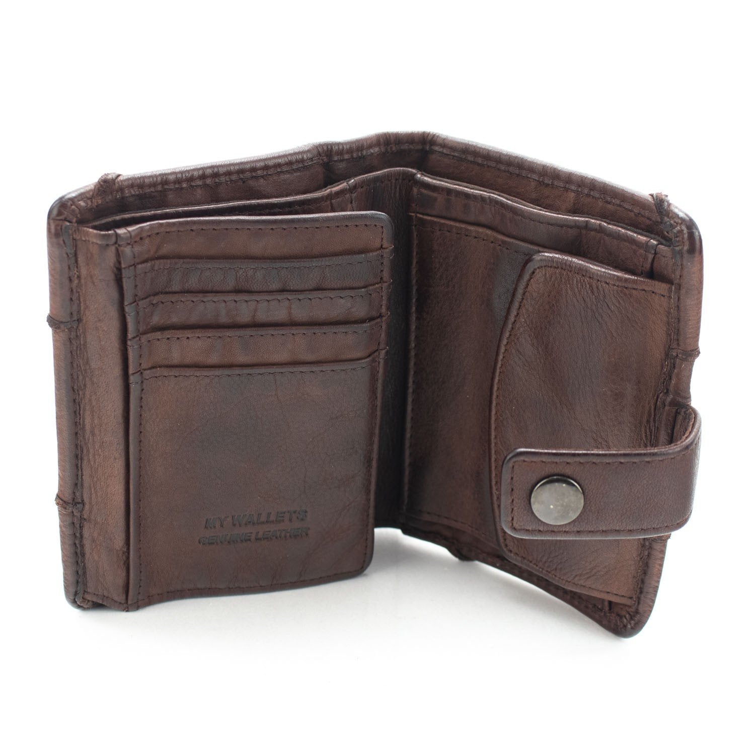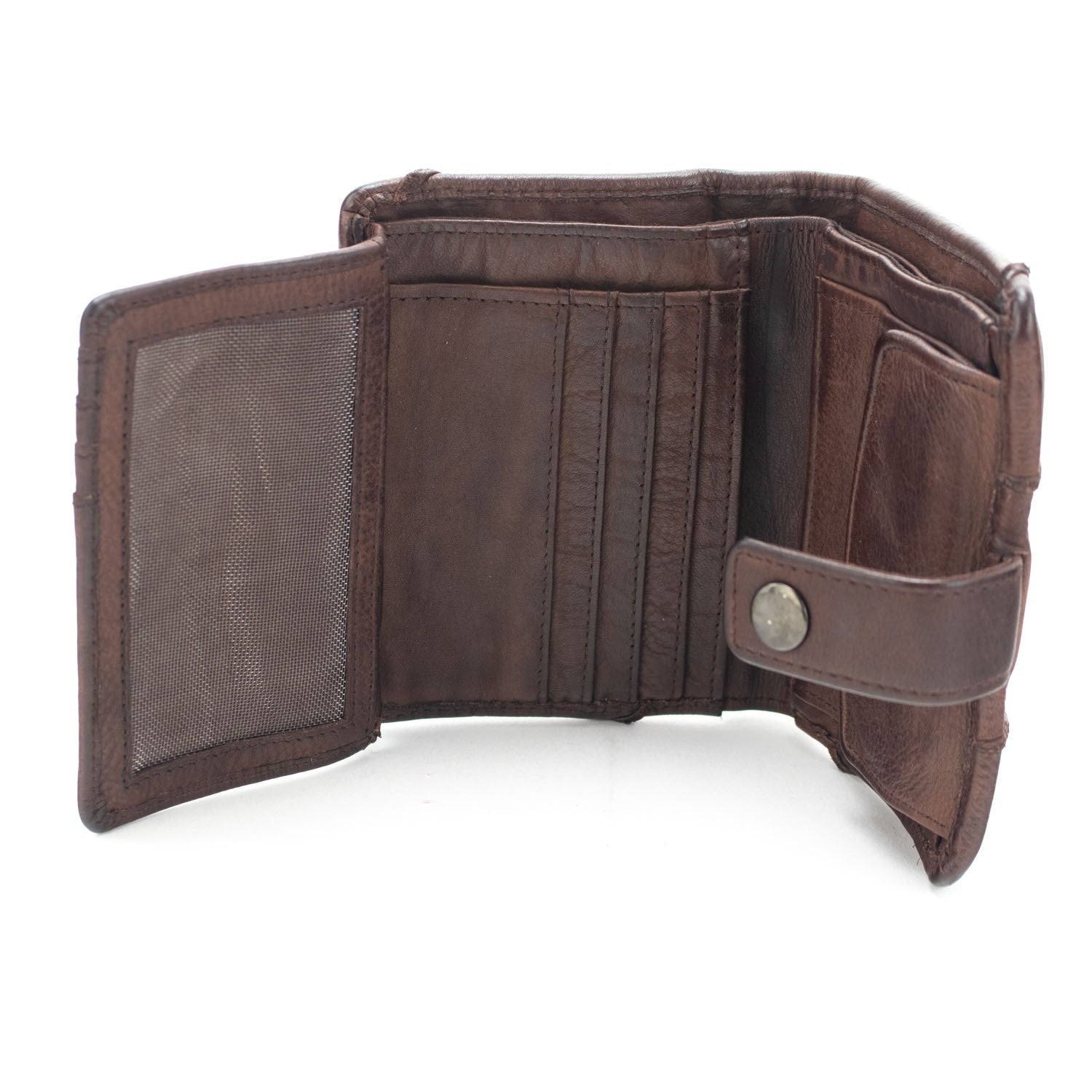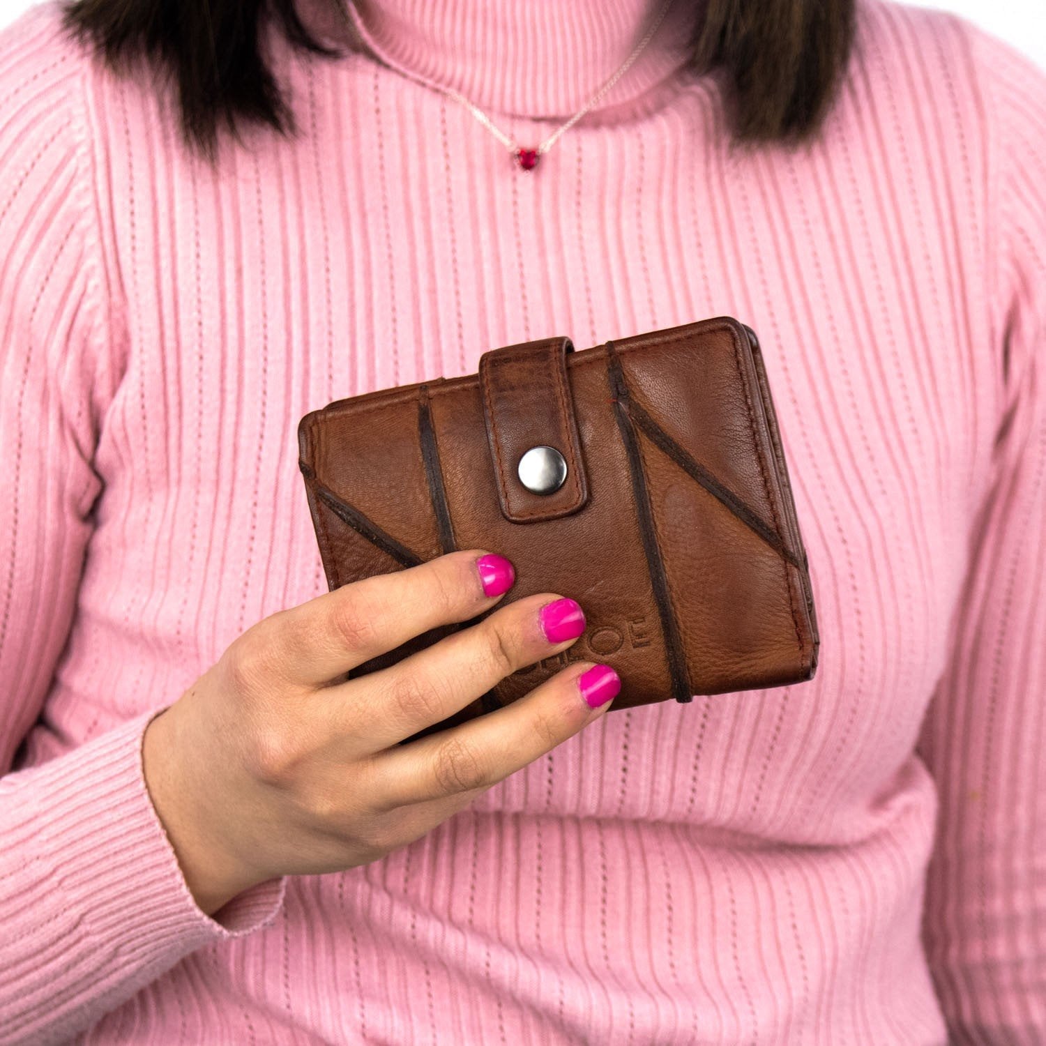 Uma carteira muito completa de tamanho compacto com fecho e espaço para organizar todos os seus cartões, notas e moedas. Acabamento em tons de couro liso lavado, confeccionado em 100% couro bovino. Bolsa interior com fecho