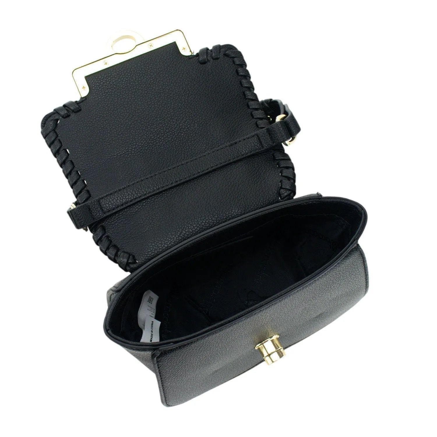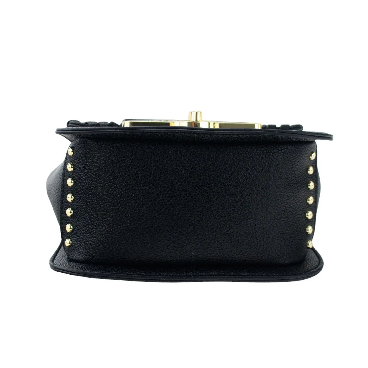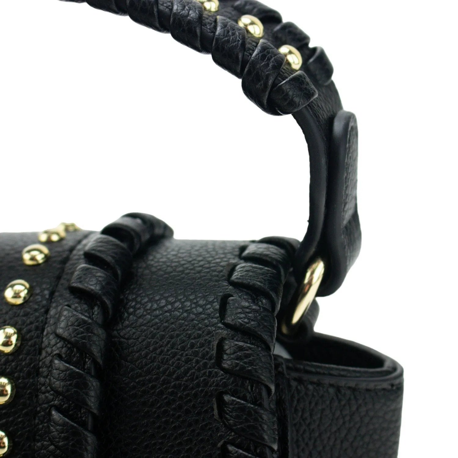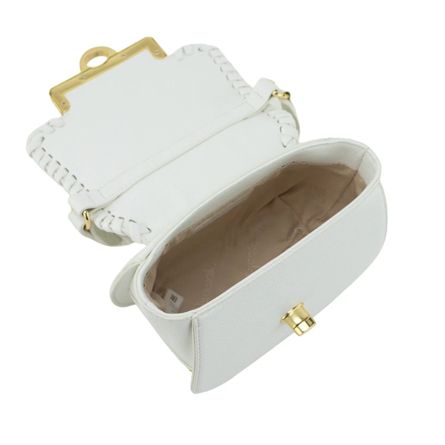 Uma espetacular bolsa com alça e compartimento interior com fecho de aba e fecho de correr. Incorpora tachas protetoras no chão em tom dourado. Seu exterior é um espetáculo de cores que detalha os elementos cravejados e trançados que realçam o design ao mais alto nível.